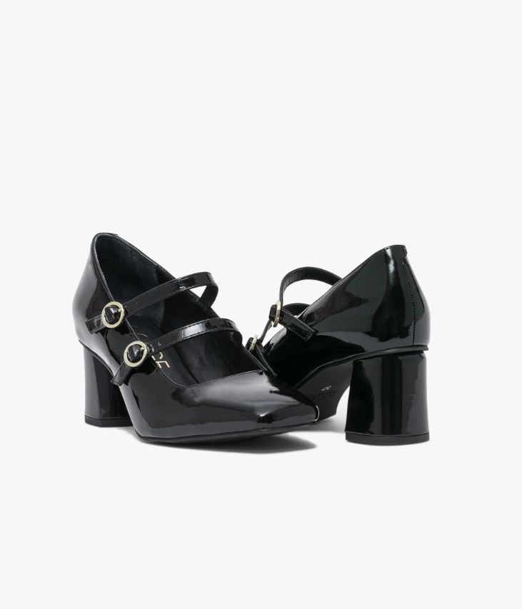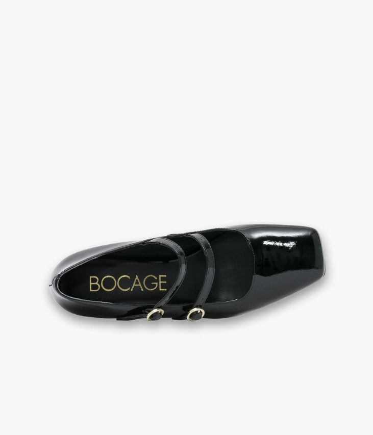 Un escarpin babies noir très élégant avec son dessus en cuir verni et son bout carré. Il se démarque grâce à deux fines brides fermées par une petite boucle ronde en métal doré dissimulant un élastique d’aisance. Cette chaussure élégante possède un talon enrobé de forme ronde, positionné en retrait, qui apporte une touche de style supplémentaire. Cette chaussure possède la technologie brevetée Bocage Innovation, ainsi votre chaussure s'adaptera aux largeurs de votre pied et vous garantira un bien-être inédit. Une chaussure entièrement doublée cuir avec semelle intérieure cuir. Talon 5,5 cm.
