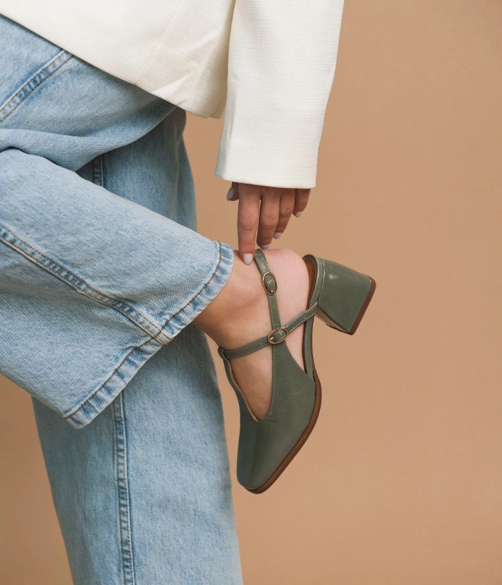 Un escarpin babies beige en cuir verni fabriqué avec soin au Portugal. Une chaussure aux accents rétro avec son bout carré et ses deux brides sur le dessus fermés par de fines boucles papillons. Cet escarpin élégant possède un grand talon enrobé aux courbes arrondies apportant une touche de style supplémentaire. Une chaussure entièrement doublée en cuir avec semelle intérieure en cuir dotée d'une fine mousse. Elastiques d'aisance dissimulés sous les boucles. Ce cuir Naplak particulièrement souple peut présenter un aspect légèrement froissé.