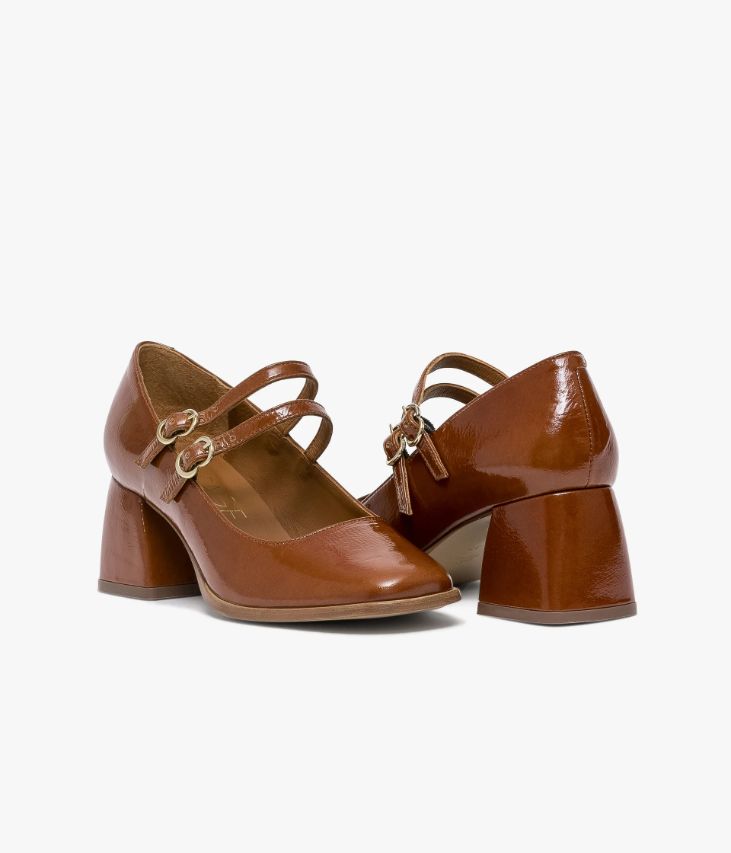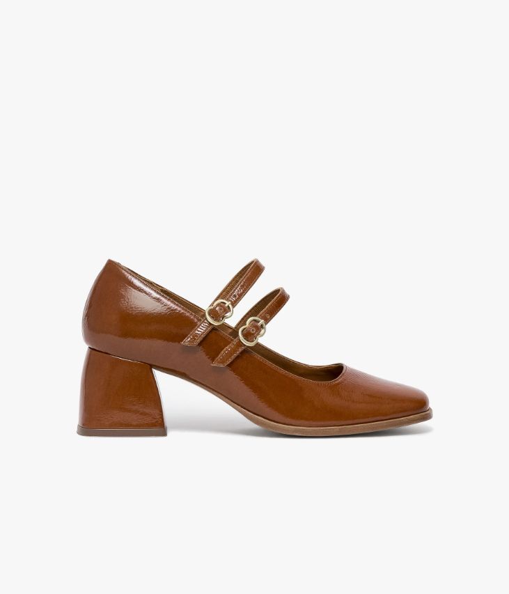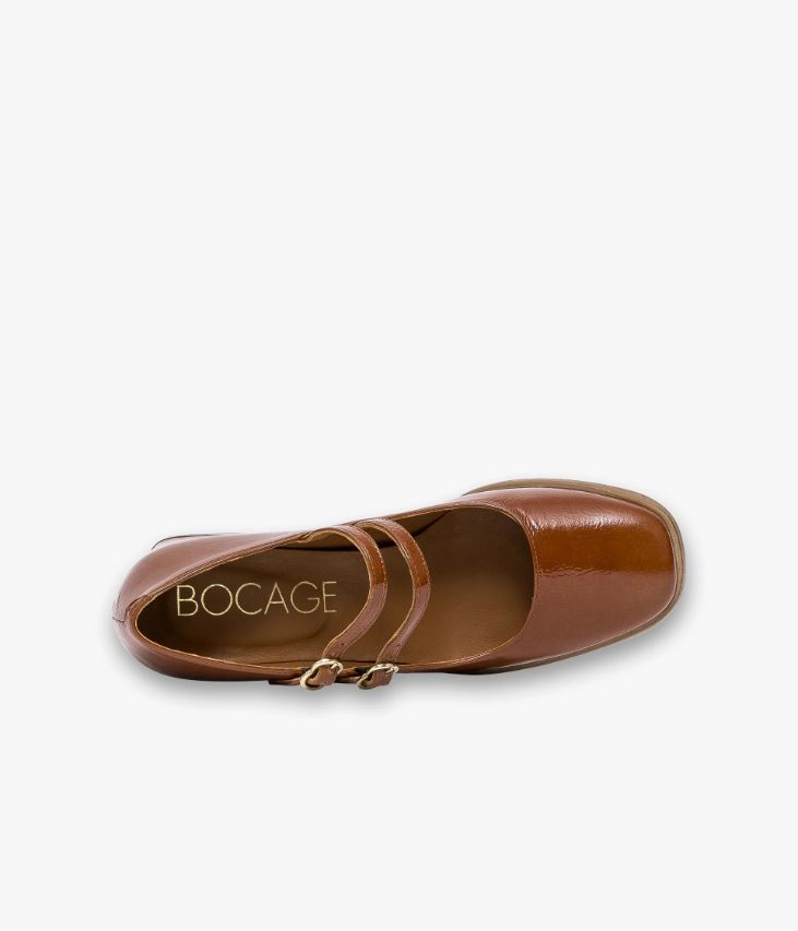 Un escarpin babies cognac en cuir verni fabriqué avec soin au Portugal. Une chaussure aux accents rétro avec son bout carré et ses deux brides sur le dessus fermées par de fines boucles papillons. Cet escarpin élégant possède un large talon enrobé aux courbes arrondies apportant une touche de style supplémentaire. Une chaussure entièrement doublée cuir avec semelle intérieure cuir dotée d’une fine mousse. Elastiques d’aisance dissimulés sous les boucles. Ce cuir Naplak particulièrement souple peut présenter un aspect légèrement froissé.