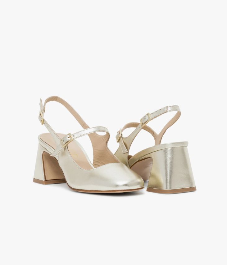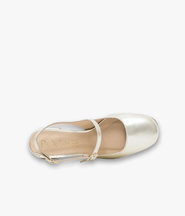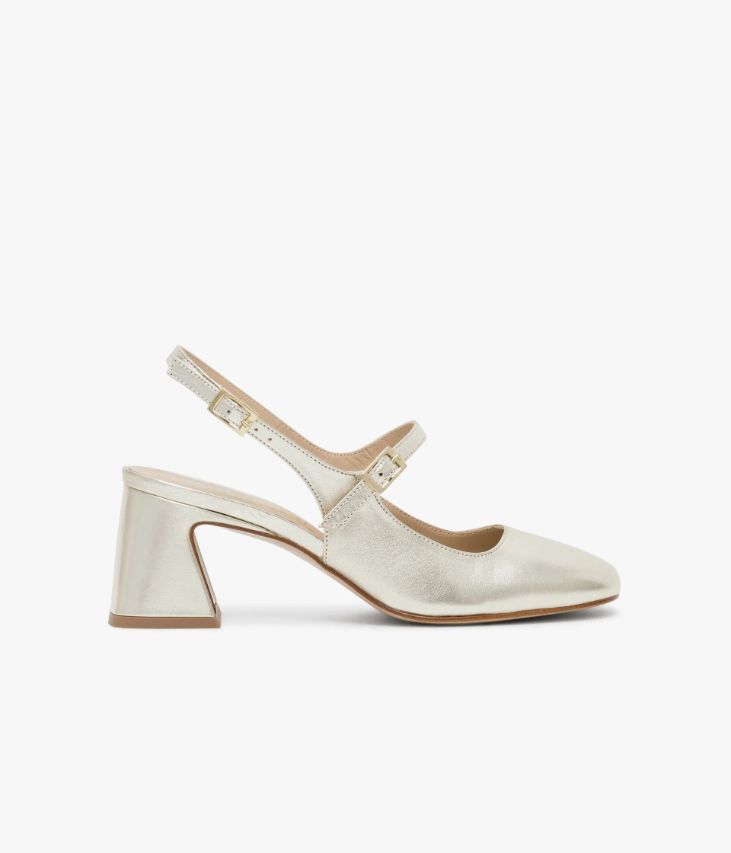 Une babies à bride arrière en cuir métallisé platine fabriquée avec soin au Portugal. Hit mode de la saison, elle arbore de fines brides sur le cou-de-pied et au talon, ajustables par des boucles dorées. Cette babies repose sur une semelle fine et un talon à gorge de forme flare enrobé de cuir. Une chaussure entièrement doublée cuir avec semelle intérieure cuir moussée.