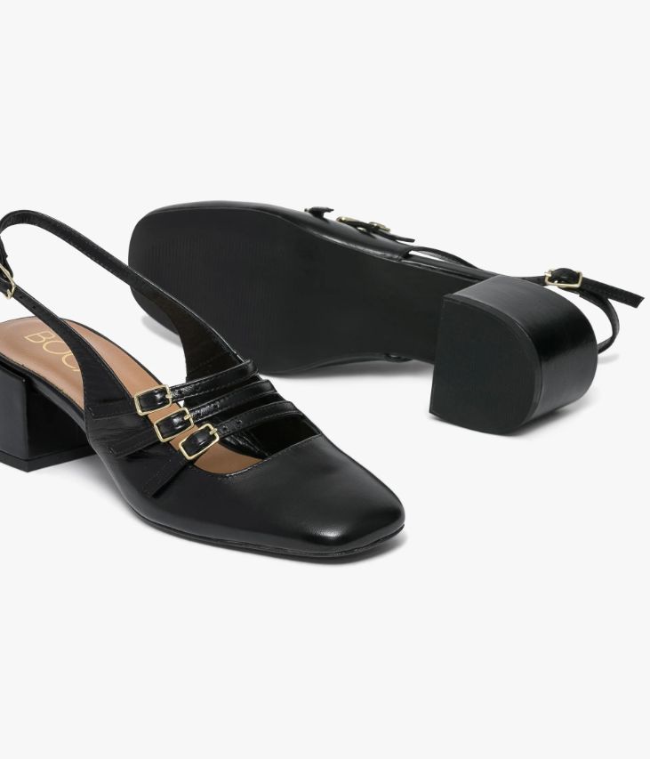 Une babies à bride arrière en cuir lisse noir fabriquée avec soin au Portugal. Hit mode de la saison, elle joue l’accumulation de fines brides fermées par des boucles dorées pour sublimer le pied. Dotée d’un bout carré aux lignes arrondies et d’un large talon enrobé, cette babies multi-brides offre beaucoup de confort. Une chaussure entièrement doublée cuir avec semelle intérieure cuir dotée d’une fine mousse.