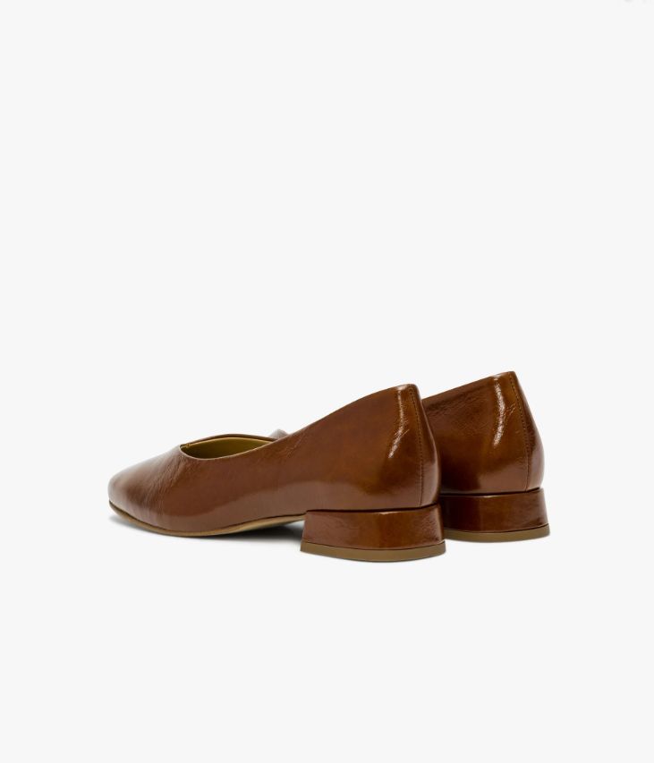 Une ballerine en cuir cognac fabriquée avec soin au Portugal. Elle affiche une allure contemporaine avec son bout carré et son décolleté en V qui dévoile largement le dessus du pied. Elle repose sur une semelle fine et un petit talon enrobé. Une chaussure entièrement doublée cuir avec semelle intérieure cuir dotée d'une fine mousse. Son cuir vintage est un cuir d'aspect vieilli qui se patine avec le temps, un cuir brillant qui affiche un aspect plus ou moins froissé, dont la tonalité peut varier, et qui peut avoir un aspect "déjà porté".