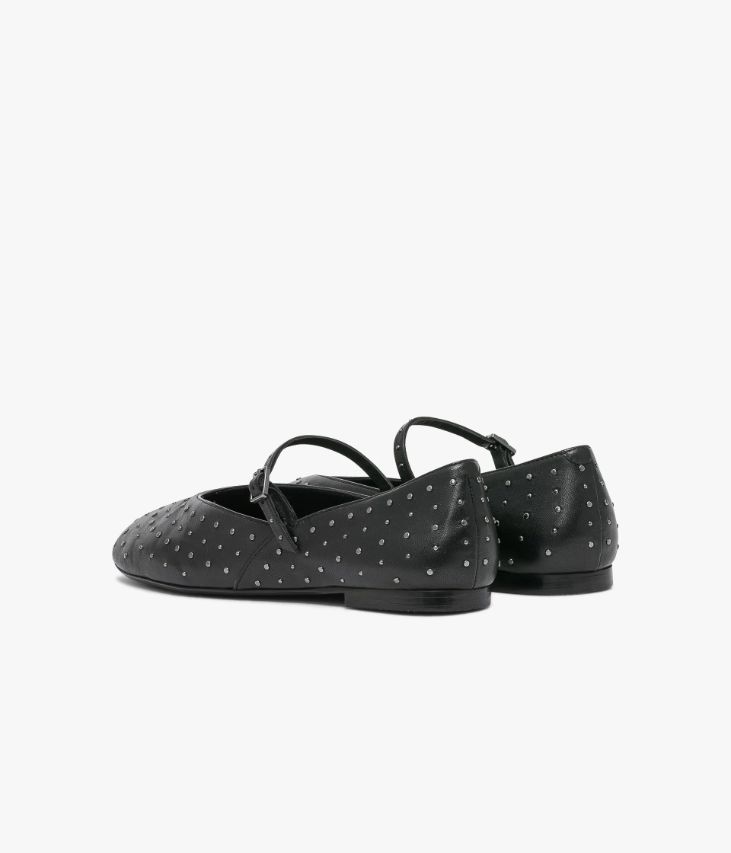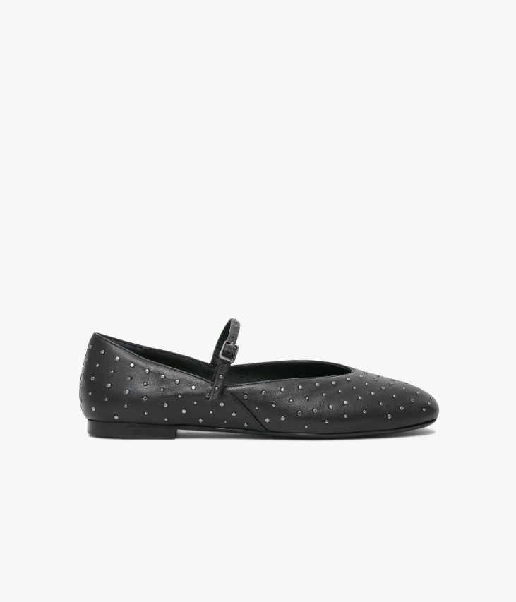 Une ballerine en cuir noir fabriquée avec le plus grand soin. Un modèle contemporain, entièrement parsemé de petits clous métalliques, qui se distingue par ses coutures latérales et sa fine bride fermée par une boucle grise. Cette chaussure est conçue selon la méthode de fabrication Sacchetto : le cuir souple de la doublure est cousu comme un petit sac puis intégré dans la tige, il enrobe ainsi le pied comme un gant. Une chaussure entièrement doublée cuir avec semelle intérieure cuir dotée d’une fine mousse.