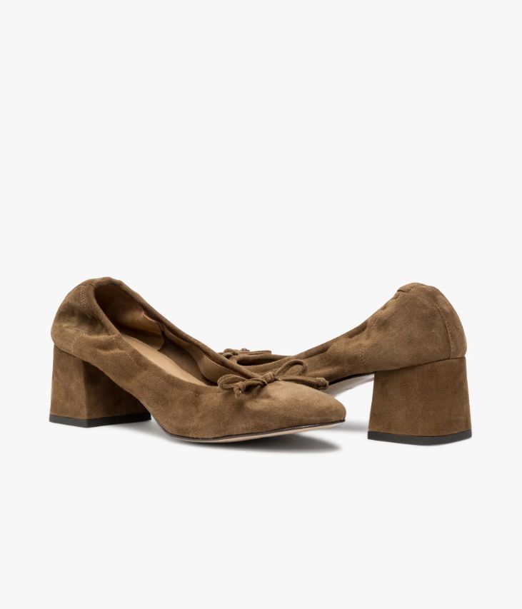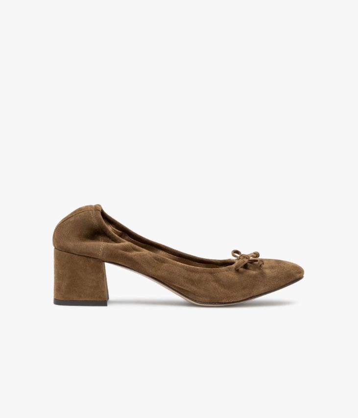 Une ballerine en cuir velours havane fabriquée avec soin au Portugal. Un intemporel revisité avec un élégant talon bloc. Cette chaussure conserve les codes emblématiques de la ballerine avec son bout arrondi, son col élastiqué assurant un bon maintien et son petit nœud sur le dessus. Une chaussure non doublée pour une sensation seconde peau, avec semelle intérieure cuir intégrant une fine couche de mousse.
