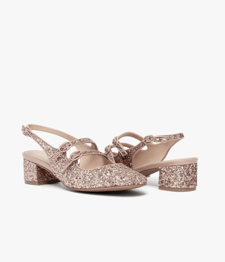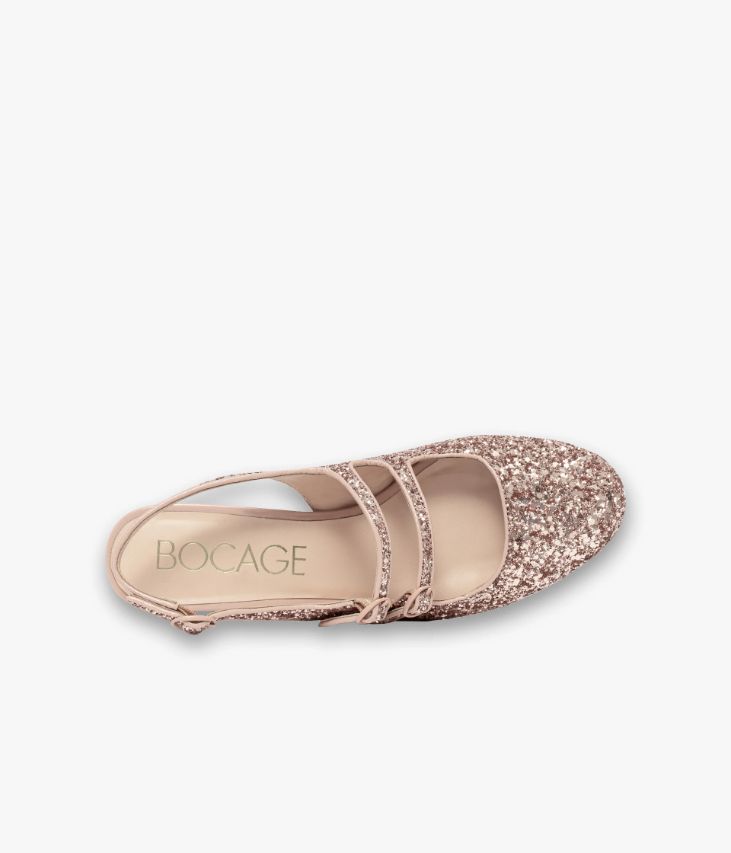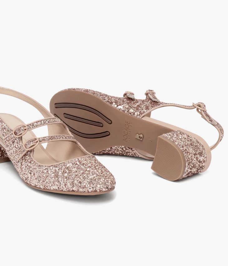 Une ballerine en toile pailletée rose bordée de cuir verni fabriquée avec le plus grand soin. Une ballerine sling-back au look glamour qui illuminera les tenues de fête. Dotée de deux brides sur le dessus et d’une bride arrière fermées par de fines boucles ton sur ton, elle offre un grand confort de marche. Une chaussure doublée cuir avec semelle intérieure cuir moussée. Elle repose sur une semelle fine avec petit talon enrobé. Notre technologie Bocage Innovation vous garantit un bien-être inégalé. La semelle dissimule des élastiques qui permettent à votre chaussure de s’adapter à votre pied. Elastiques d’aisance sous les boucles de fermeture.