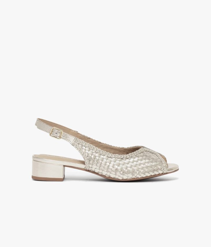 Une ballerine ouverte en cuir platine fabriquée avec le plus grand soin. Inspirée du vestiaire vintage, cette chaussure s’affiche dans un joli cuir métallisé tressé, qui s’adapte parfaitement à la morphologie du pied. Elle se ferme grâce à une boucle en métal doré sur la bride arrière. Notre technologie Bocage Innovation vous garantit un bien-être inégalé. La semelle dissimule des élastiques qui permettent à votre chaussure de s’adapter à votre pied. Une chaussure partiellement doublée cuir avec semelle intérieure cuir dotée d’une fine mousse.