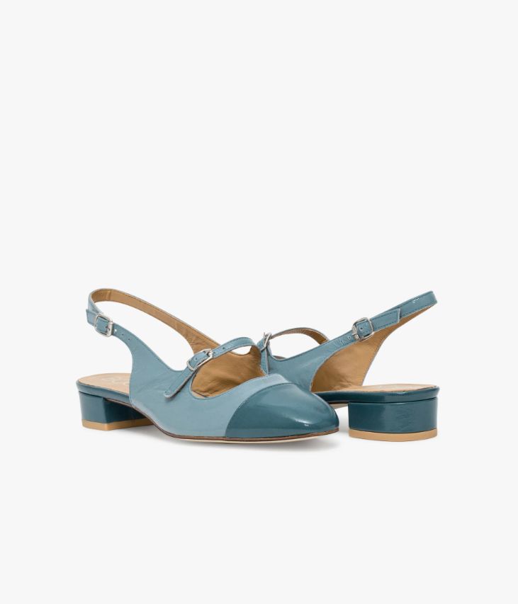 Une ballerine à bride arrière en cuir bleu fabriquée avec soin au Portugal. Une chaussure sophistiquée déclinée dans un joli camaïeu de bleus. Les jolies courbes du décolleté et la fine bride sur le cou-de-pied lui donnent une allure particulièrement élégante. Elle s’ajuste à l’aide de fines boucles argentées sur les deux brides. Une chaussure entièrement doublée cuir avec semelle intérieure cuir dotée d’une fine mousse. Elle repose sur une semelle fine avec petit talon enrobé. Son cuir vintage est un cuir d'aspect vieilli qui se patine avec le temps, un cuir brillant qui affiche un aspect plus ou moins froissé, dont la tonalité peut varier, et qui peut avoir un aspect "déjà porté".
