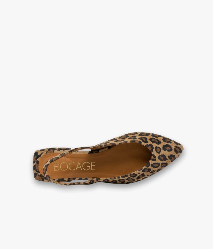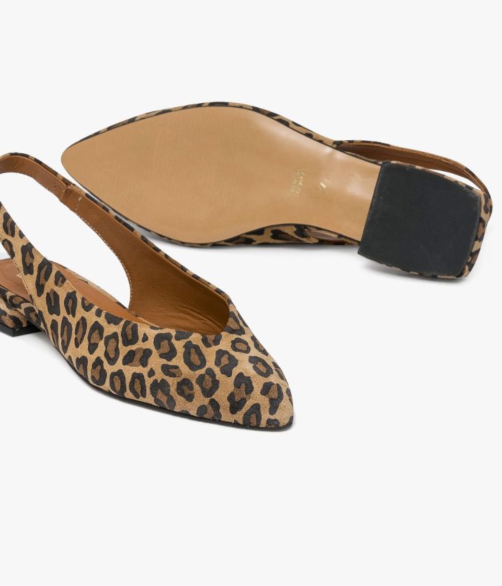Une ballerine sling-back en cuir velours beige à motif léopard fabriquée avec soin au Portugal. Un classique revisité dans une version résolument contemporaine avec son bout pointu et son talon plat enrobé de forme carrée positionné en retrait. Une chaussure en cuir souple ultra confortable avec petit élastique d’aisance dissimulé sur la bride arrière. Entièrement doublée cuir, elle possède une semelle intérieure cuir dotée d’une fine mousse.