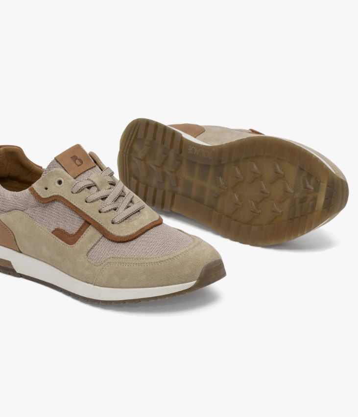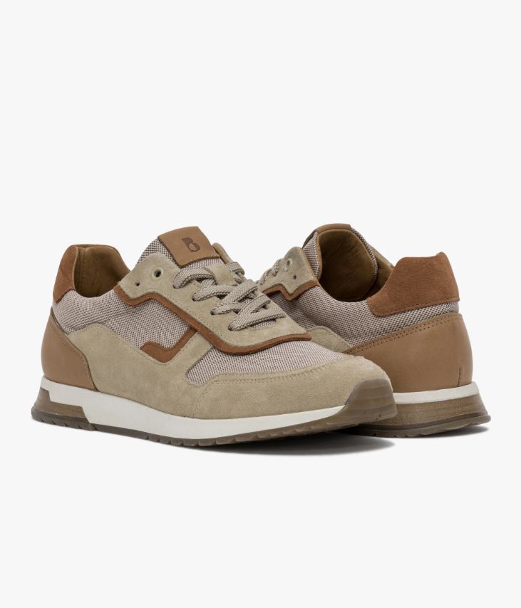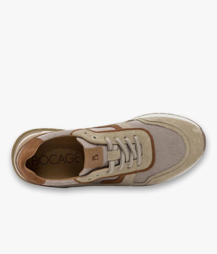 Une basket capuccino et beige fabriquée avec soin au Portugal dans un mélange de cuir lisse, de cuir velours et de toile nylon. Elle est rehaussée d’un empiècement camel au talon et d’un patch assorti sur la languette. Une basket homme entièrement doublée cuir avec semelle intérieure cuir moussée très confortable et amovible. Elle se ferme grâce à des lacets plats et repose sur une semelle blanche avec insert aspect lamellé collé au talon. Col et languette rembourrés pour plus de confort.