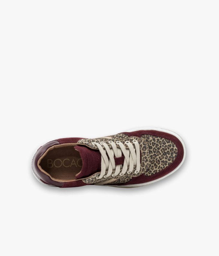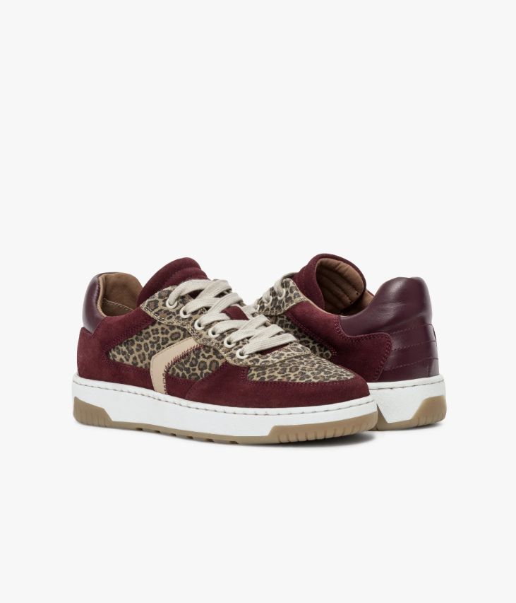 Une basket lie-de-vin fabriquée avec soin au Portugal. Ce modèle alliant cuir velours et cuir lisse est rehaussé d’empiècements à motif léopard, qui lui confèrent une allure sauvagement tendance. Sur les côtés, des touches de cuir beige ajoutent une touche de style supplémentaire. Des chaussures partiellement doublées cuir avec semelle intérieure cuir amovible très confortable. Cette paire bénéficie du montage Strobel et d’une semelle renforcée par un cousu latéral, gage de qualité, apportant souplesse, robustesse et durabilité. Col et languette rembourrés pour plus de confort.