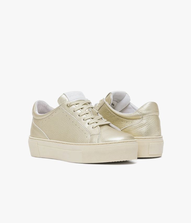 Une basket platine en cuir grainé métallisé fabriquée avec soin au Portugal. Une chaussure scintillante agrémentée de fines perforations sur les quartiers et d’une étiquette écru sur la languette. Une sneaker doublée textile avec semelle intérieure cuir amovible ultra confortable. Elle repose sur une semelle plateforme en caoutchouc de 3,5 cm. Cette paire bénéficie d’un cousu latéral qui consiste à relier la tige et la semelle. Cette technique apporte une réelle robustesse et souplesse au produit. Fermeture par lacets plats.