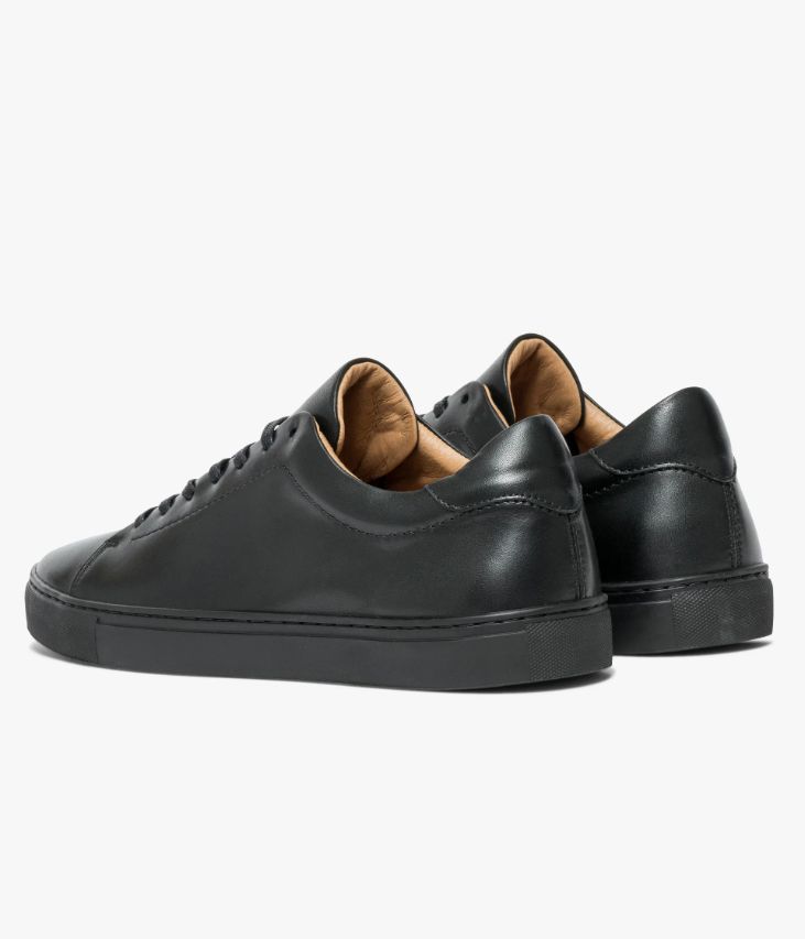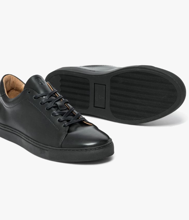 Une basket noire en cuir lisse fabriquée avec soin au Portugal. Une basket homme au look épuré, facile à intégrer dans les looks du quotidien, fermée par des lacets ton sur ton et posée sur une semelle miel. Une sneaker entièrement doublée cuir avec semelle intérieure cuir amovible très confortable. La tige et la semelle sont renforcées grâce au cousu latéral. Ce cousu est un gage de qualité quant à sa fabrication et à sa durabilité. Cette paire bénéficie du montage Strobel qui consiste à coudre directement la tige à la première de montage lors de la piqûre. Cette technique apporte une réelle robustesse et de la souplesse. Le cuir Crust est un cuir à tannage végétal qui est ensuite teinté à plusieurs reprises sur forme pour donner cet effet de patine si particulier, qui va évoluer au fil du temps au fil des entretiens réguliers.