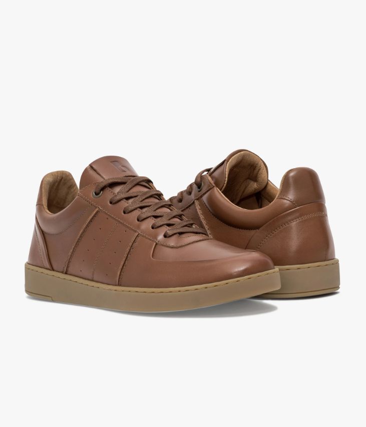 Une basket en cuir lisse cognac fabriquée avec soin au Portugal. Un modèle citadin à l’allure dynamique avec surpiqûres, perforations sur les côtés et empiècement avec coutures retournées sur le bout et le contrefort. Une basket homme partiellement doublée cuir avec semelle intérieure cuir moussée amovible. Elle repose sur une semelle miel extra souple offrant un excellent confort de marche. Cette paire bénéficie du montage Strobel et d’une semelle renforcée par un cousu latéral, gage de qualité, apportant souplesse, robustesse et durabilité. Col et languette rembourrés.