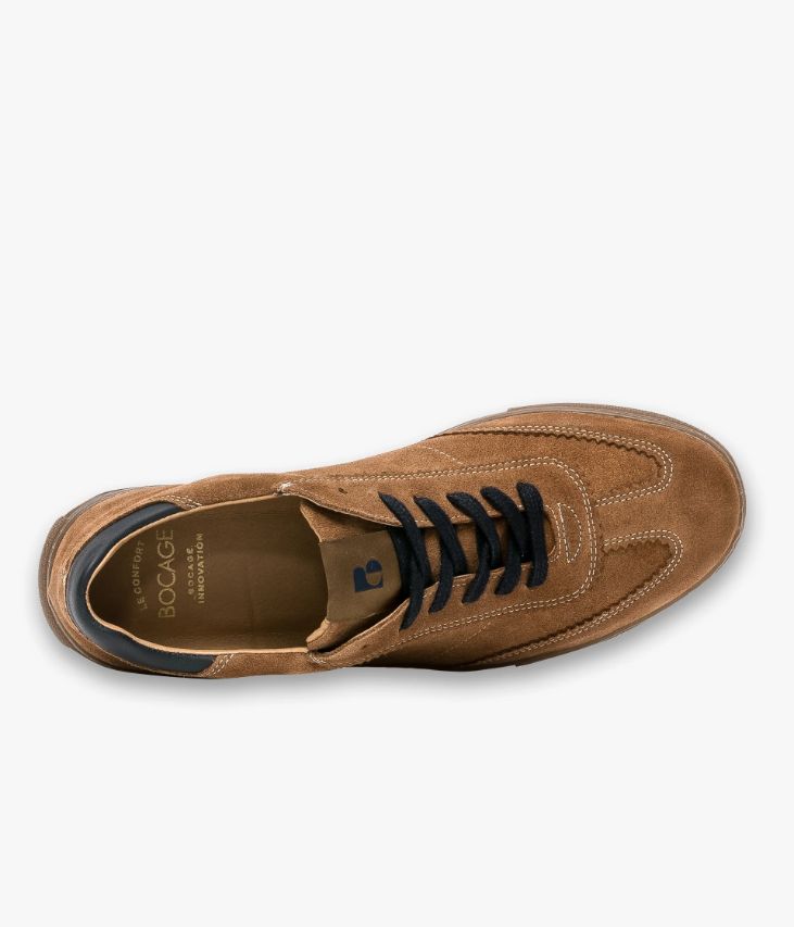 Une basket en cuir velours cognac fabriquée avec soin au Portugal. Elle affiche des empiècements aux finitions dentelées, une étiquette logo sur la languette et une touche de cuir noir au talon, assortie aux lacets, qui lui confèrent une allure vintage. Cette paire bénéficie du montage Strobel et d’une semelle renforcée par un cousu latéral, gage de qualité, apportant souplesse, robustesse et durabilité. Notre technologie Bocage Innovation vous garantit un bien-être inégalé. La semelle dissimule des élastiques qui permettent à votre chaussure de s’adapter à votre pied. Une chaussure entièrement doublée cuir avec semelle intérieure cuir amovible très confortable.