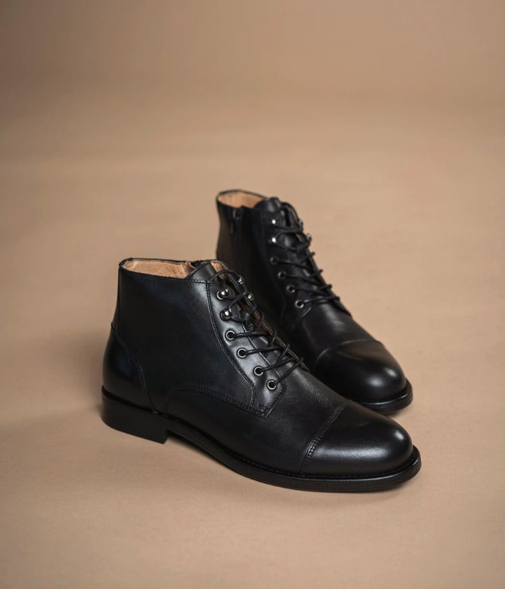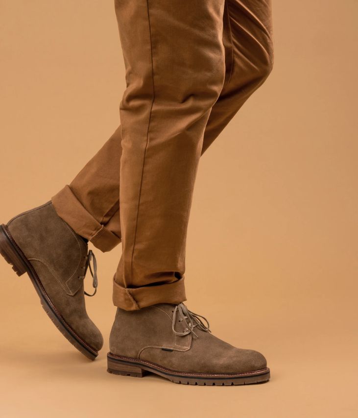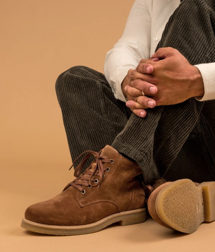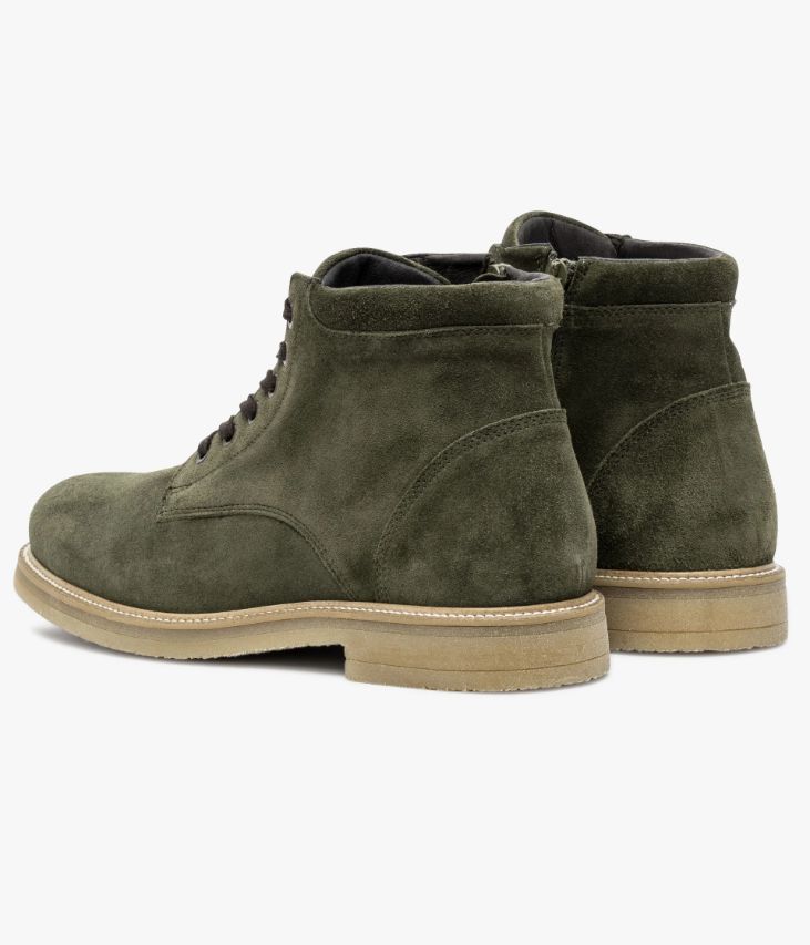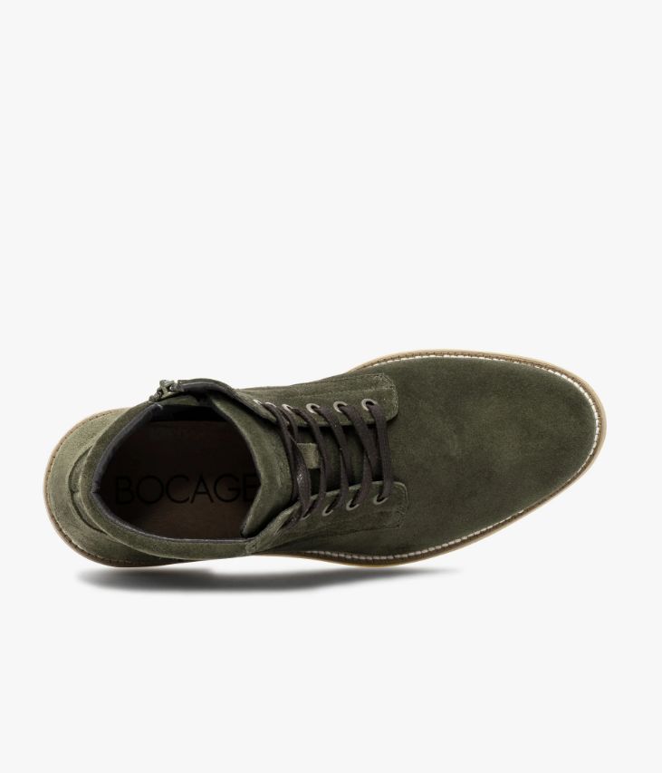 Un boots en cuir velours kaki fabriqué avec soin au Portugal. Un boots à lacets et zip intérieur au look authentique et rassurant posé sur une semelle aspect crêpe avec trépointe cuir piquée. Un modèle idéal pour accompagner les tenues décontractées du quotidien. Le col et la languette sont rembourrés pour offrir plus de confort. Une chaussure doublée textile et cuir avec semelle intérieure cuir moussée. Signature Bocage embossée sur la languette.