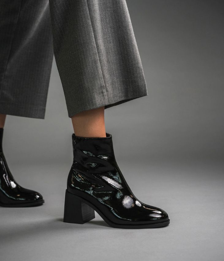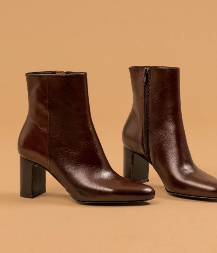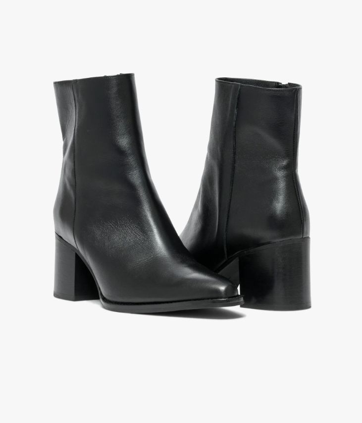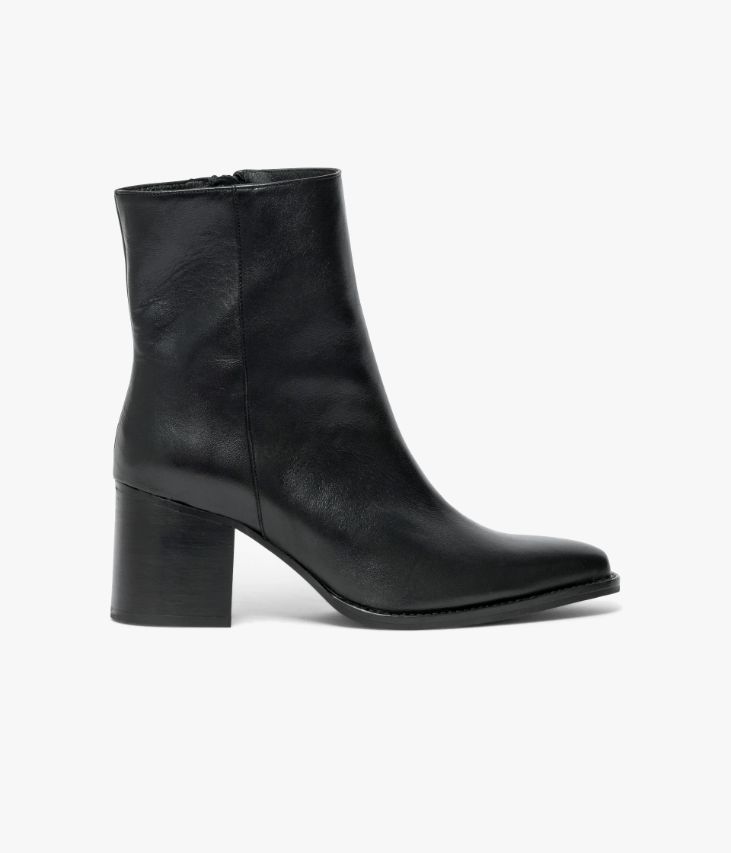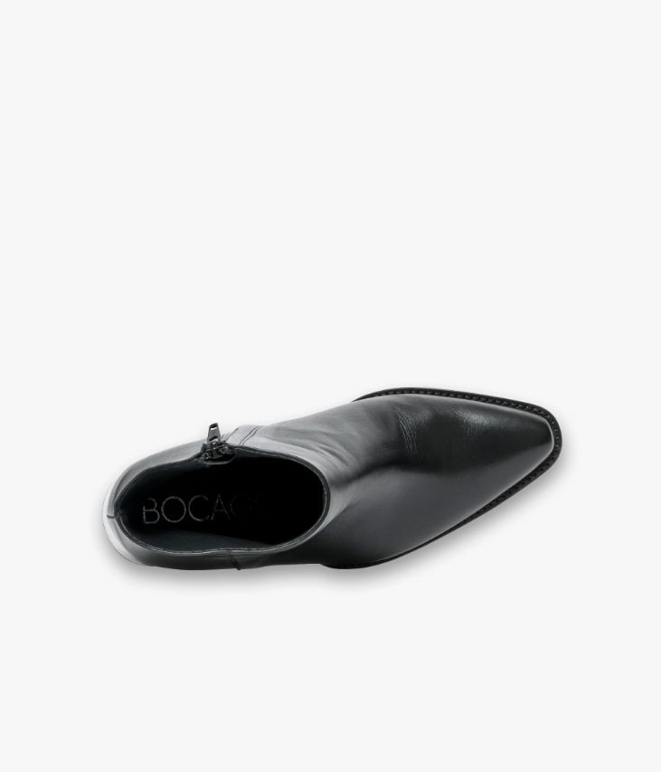 Un boots en cuir lisse noir fabriqué avec soin au Portugal. Avec son bout pointu et son large talon, ce boot insufflera une touche western dans le vestiaire féminin. Une chaussure entièrement doublée cuir avec semelle intérieure cuir moussée. Elle repose sur une semelle débordante avec trépointe piquée. Notre technologie Bocage Innovation vous garantit un bien-être inégalé. La semelle dissimule des élastiques qui permettent à votre chaussure de s’adapter à votre pied. Fermeture par zip intérieur.