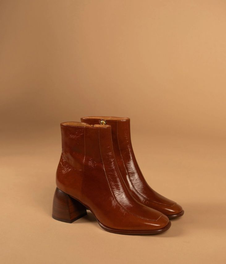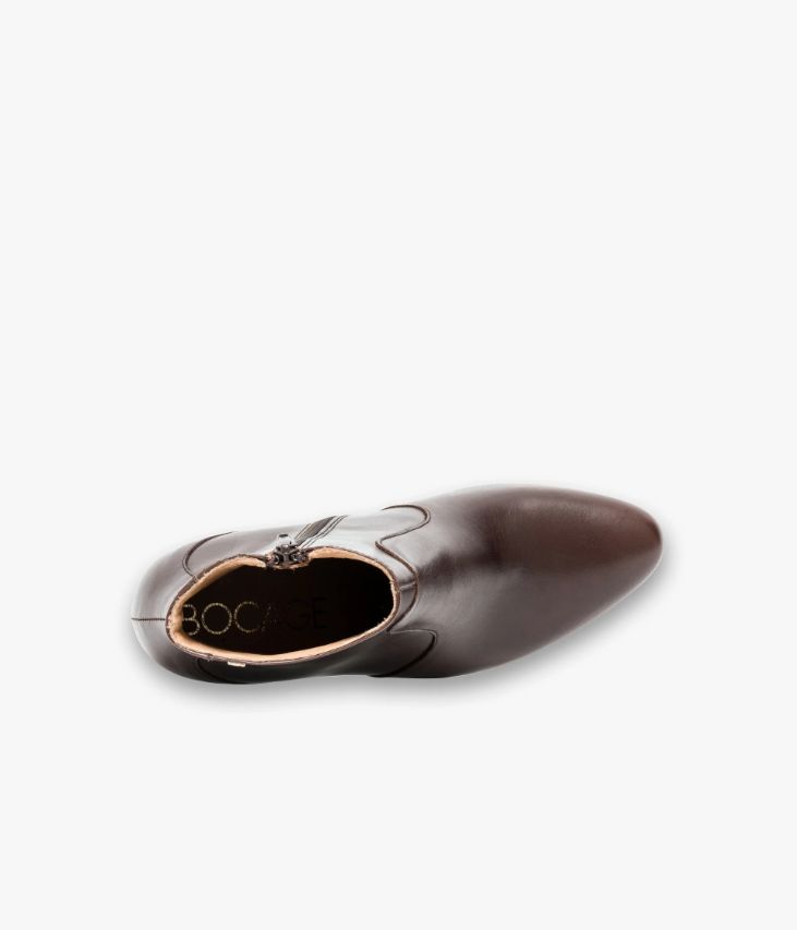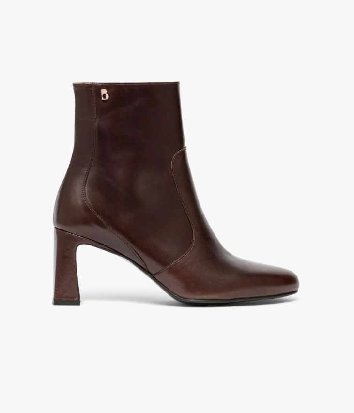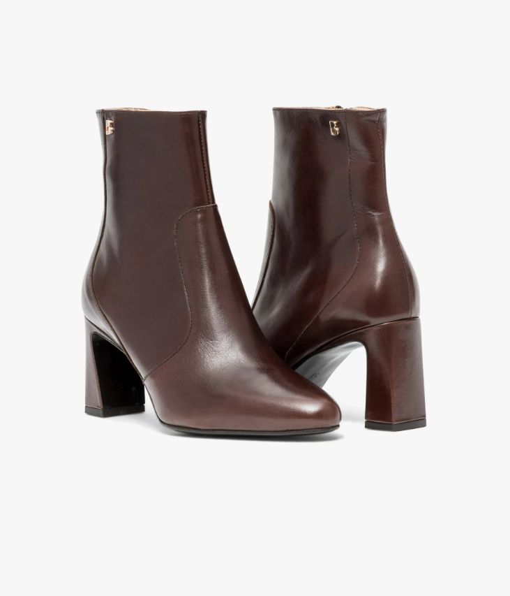 Un boots en cuir chocolat fabriqué avec soin au Portugal. Un modèle ultra féminin à la ligne épurée avec bout amande effilé. Au talon, un empiècement aux courbes sensuelles permet d’élancer la jambe, tandis qu’un logo doré sublime la cheville. Cette bottine femme repose sur une semelle fine et un talon à gorge très contemporain. Une chaussure entièrement doublée cuir avec semelle intérieure cuir dotée d’une fine mousse. Elle se ferme grâce à un zip intérieur.
