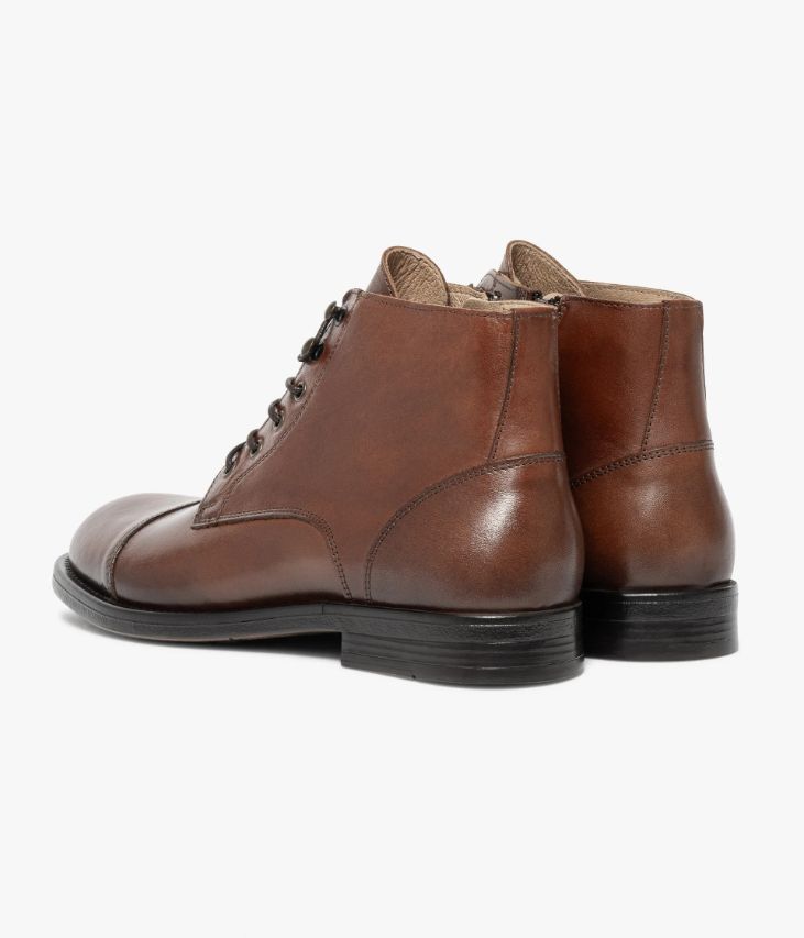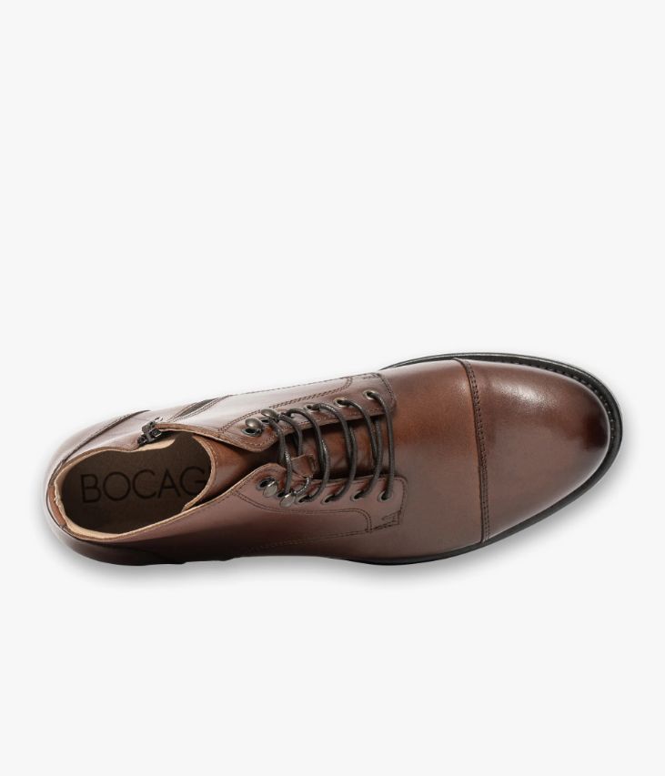 Un boots en cuir cognac fabriqué avec soin au Portugal. Un boots casual chic idéal pour accompagner toutes les tenues du quotidien. Il se distingue par ses doubles surpiqûres sur le bout droit, sur les quartiers et au talon. Ce modèle présente un système de laçage avec œillets et crochets en métal vieilli permettant un ajustement idéal et un zip intérieur offrant un enfilage facile. Une chaussure doublée cuir avec semelle intérieure cuir. Cette paire bénéficie du cousu Blake, une couture unique prenant, à la fois, la semelle intérieure, la semelle extérieure et la tige de la chaussure. Ce montage est apprécié pour la finesse de la semelle. Son cuir vintage est un cuir d'aspect vieilli qui se patine avec le temps, un cuir brillant qui affiche un aspect plus ou moins froissé, dont la tonalité peut varier, et qui peut avoir un aspect "déjà porté".