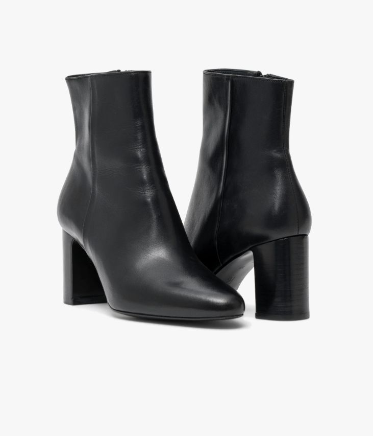 Un joli boots en cuir noir fabriqué avec soin au Portugal. Avec sa silhouette fine, son bout amande très effilé et son talon haut, il s’impose comme le nouvel essentiel du vestiaire féminin qui accompagne avec élégance toutes les tenues. Une bottine entièrement doublée cuir avec semelle intérieure cuir dotée d’une fine mousse. Elle repose sur une semelle fine et un talon droit lamellé collé. Fermeture par zip intérieur.