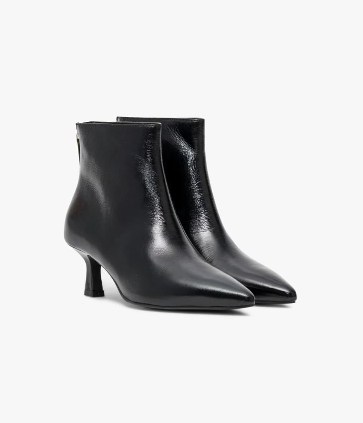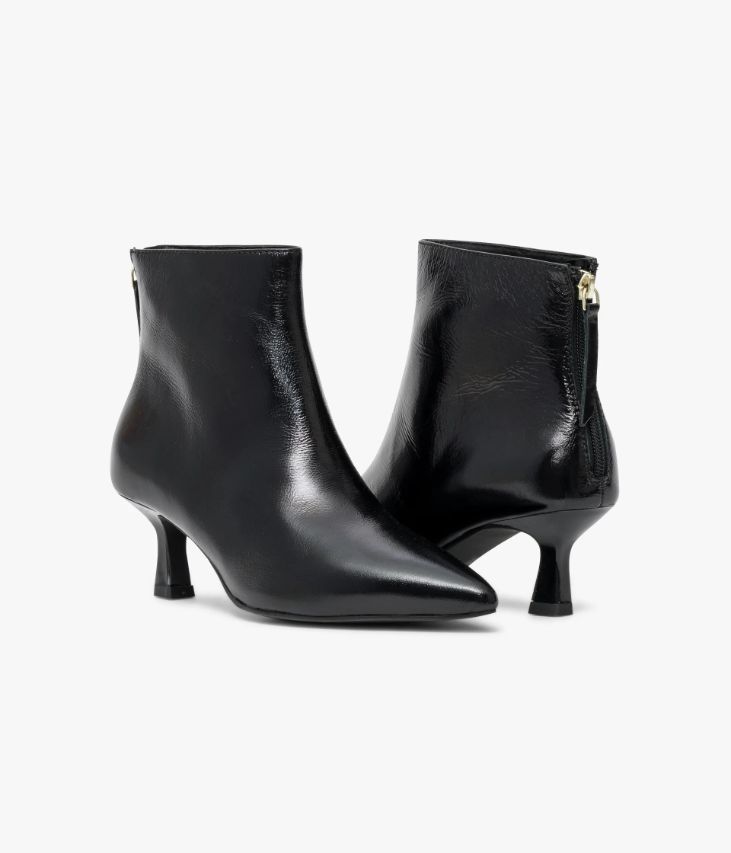 Un boots en cuir noir fabriqué avec le plus grand soin. Une bottine ultra féminine avec bout pointu et talon kitten-heel laqué offrant une parfaite stabilité. Doté d’une tige courte, elle élance et sublime la silhouette. Son cuir vintage est un cuir d'aspect vieilli qui se patine avec le temps, un cuir brillant qui affiche un aspect plus ou moins froissé, dont la tonalité peut varier, et qui peut avoir un aspect "déjà porté". Ce modèle, particulièrement chic, se ferme à l’aide d’un zip à l’arrière du talon. Une chaussure entièrement doublée cuir avec semelle intérieure cuir dotée d’une fine mousse. Notre technologie Bocage Innovation vous garantit un bien-être inégalé. La semelle dissimule des élastiques qui permettent à votre chaussure de s’adapter à votre pied.