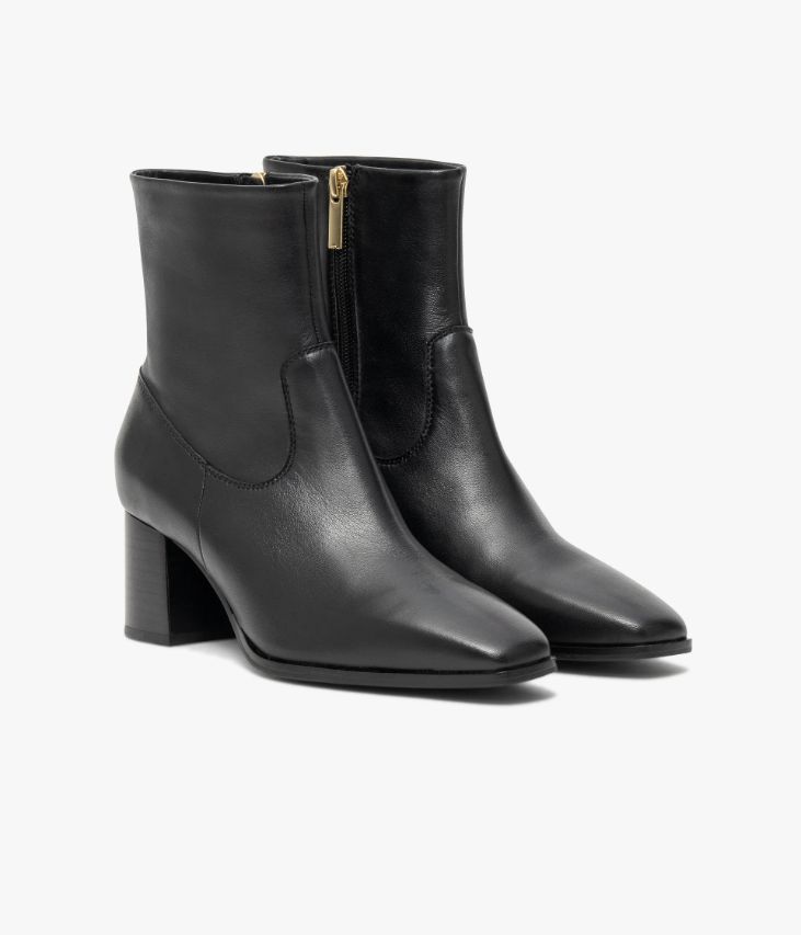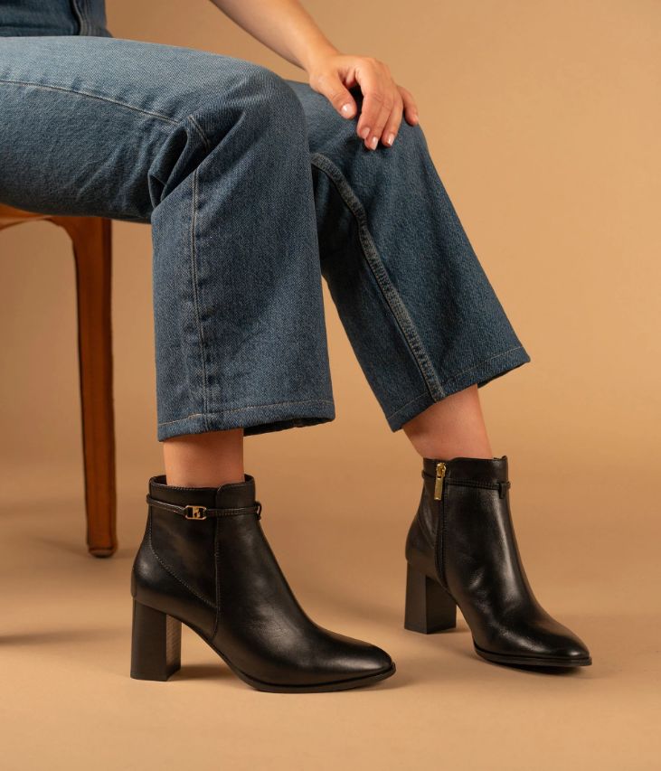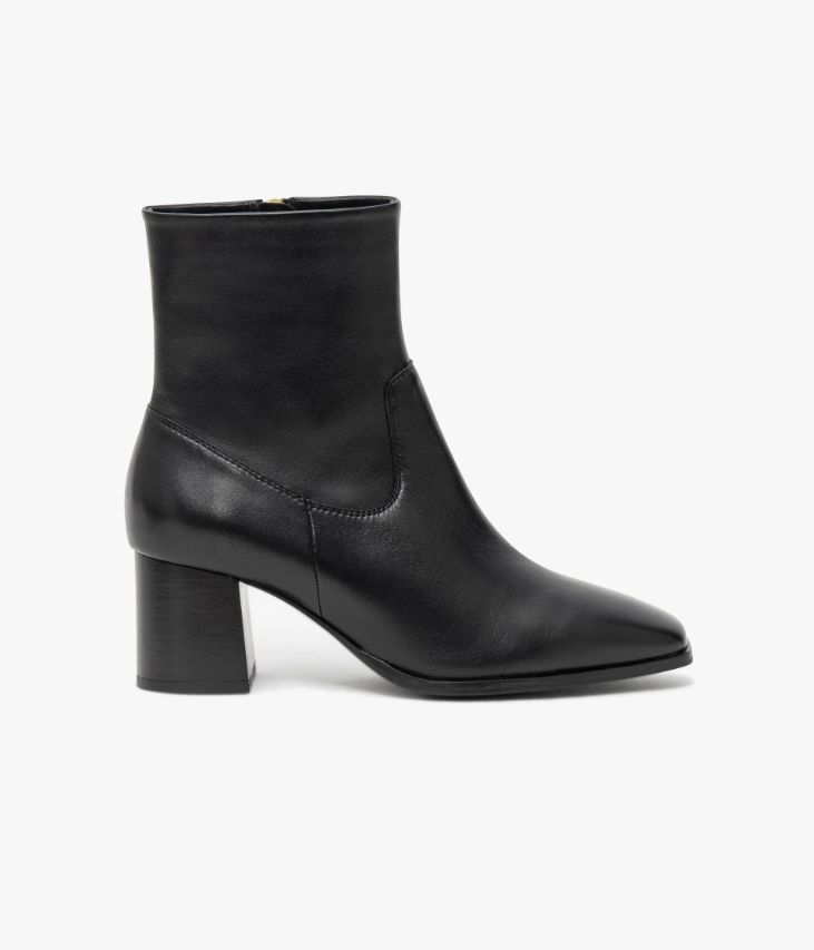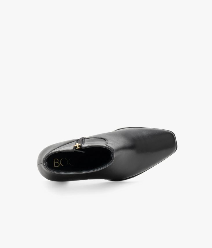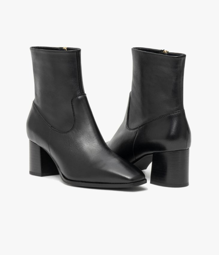 Un boots en cuir noir fabriqué avec le plus grand soin. Ce modèle à bout carré, sobre et élégant, s’impose comme le nouvel essentiel du vestiaire féminin. Conçue dans un cuir ultra souple, cette bottine offre un excellent confort de marche. Elle possède une tige non doublée qui épouse parfaitement la cheville et se ferme facilement grâce à un zip intérieur. Une chaussure doublée cuir sur la partie pied, avec semelle intérieure cuir moussée. Elle repose sur une semelle fine et un talon lamellé collé parfaitement stable. Notre technologie Bocage Innovation vous garantit un bien-être inégalé. La semelle dissimule des élastiques qui permettent à votre chaussure de s’adapter à votre pied.