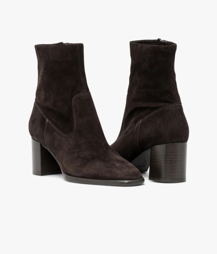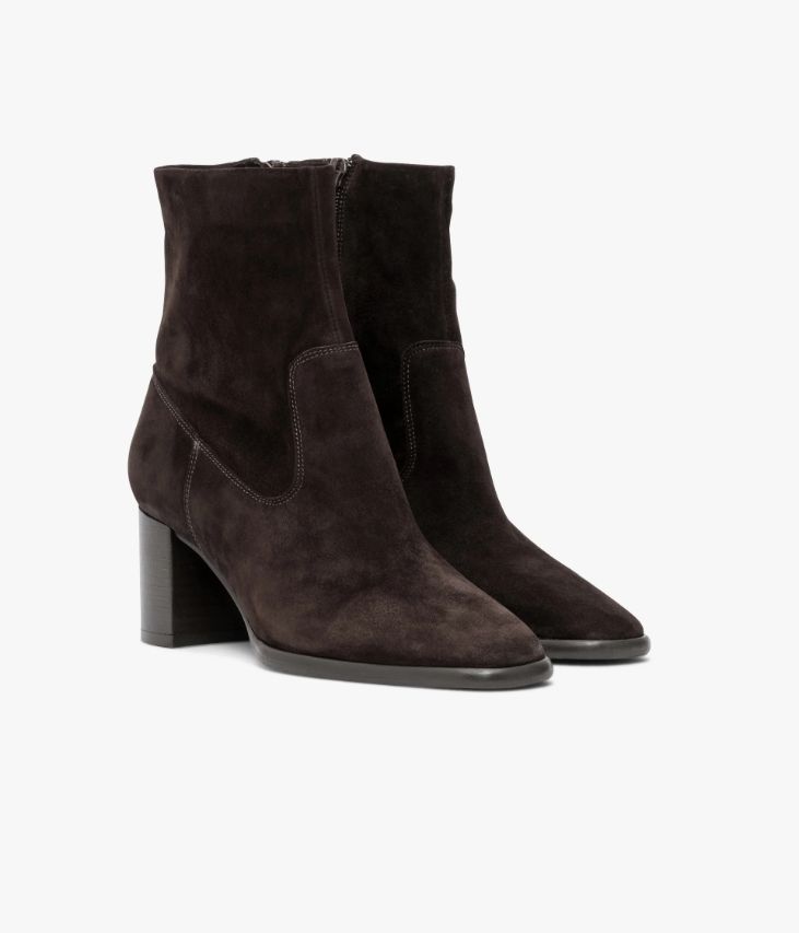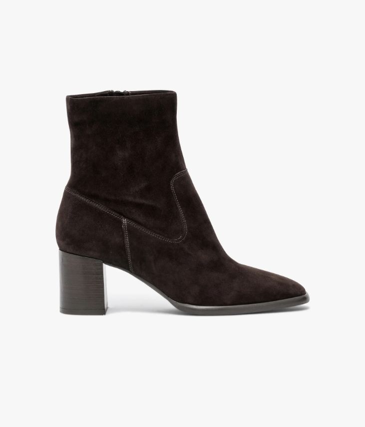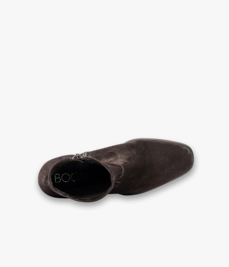 Un boots chocolat en cuir velours fabriqué avec soin au Portugal. Un modèle élégant avec bout carré et tige souple non doublée parfaitement ajustée à la cheville. Une bottine sobre, élégante et pourtant résolument contemporaine qui s’impose comme le nouvel essentiel du vestiaire. Une chaussure doublée cuir sur la partie pied avec semelle intérieure cuir dotée d’une fine mousse. Elle repose sur une semelle fine et un talon lamellé collé parfaitement stable. Notre technologie Bocage Innovation vous garantit un bien-être inégalé. La semelle dissimule des élastiques qui permettent à votre chaussure de s’adapter à votre pied.