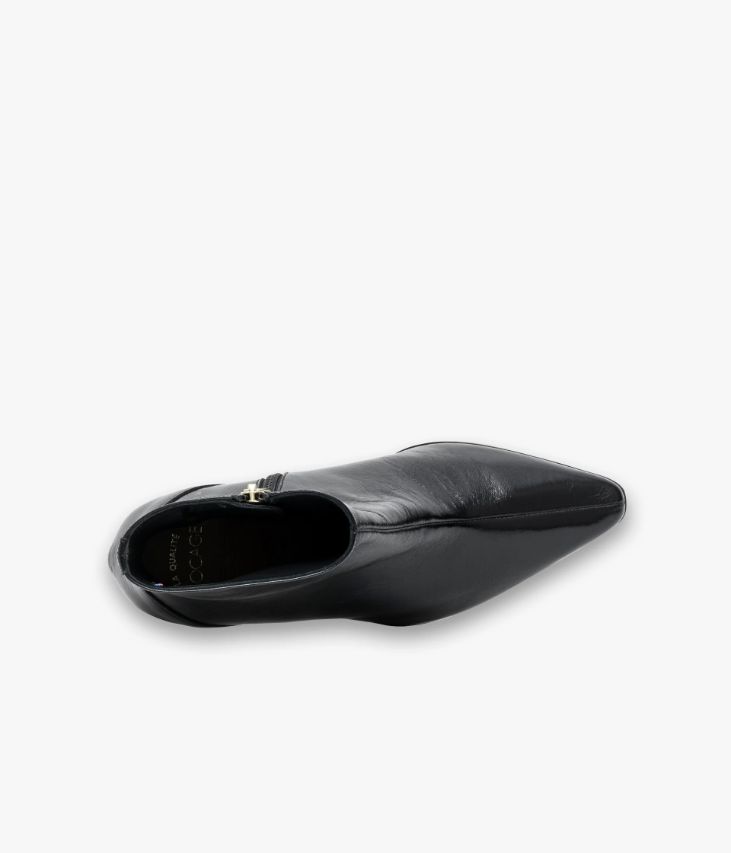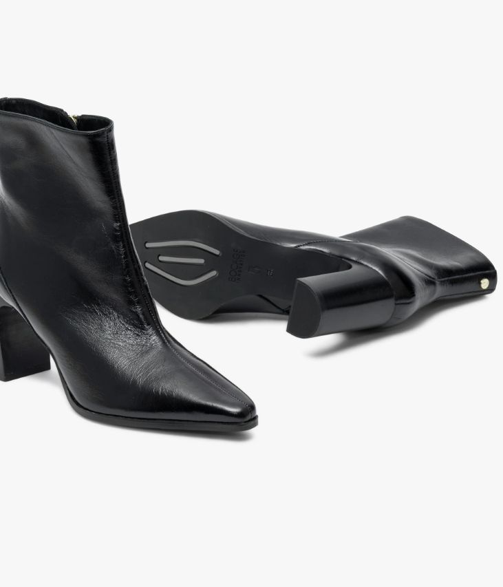 Un boots en cuir vintage noir fabriqué avec soin dans notre atelier en France, au cœur du Maine et Loire (49). Un modèle ultra féminin avec ligne effilée et bout pointu agrémenté d’un empiècement profilé au talon. Son cuir vintage est un cuir d'aspect vieilli qui se patine avec le temps, un cuir brillant qui affiche un aspect plus ou moins froissé, dont la tonalité peut varier, et qui peut avoir un aspect "déjà porté". Une bottine entièrement doublée cuir avec semelle intérieure cuir dotée d’une fine mousse. Elle repose sur une semelle fine avec trépointe cuir et un talon à gorge lamellé collé. Notre technologie Bocage Innovation vous garantit un bien-être inégalé. La semelle dissimule des élastiques qui permettent à votre chaussure de s’adapter à votre pied. Fermeture par zip intérieur. Logo signature à l’arrière de la tige.