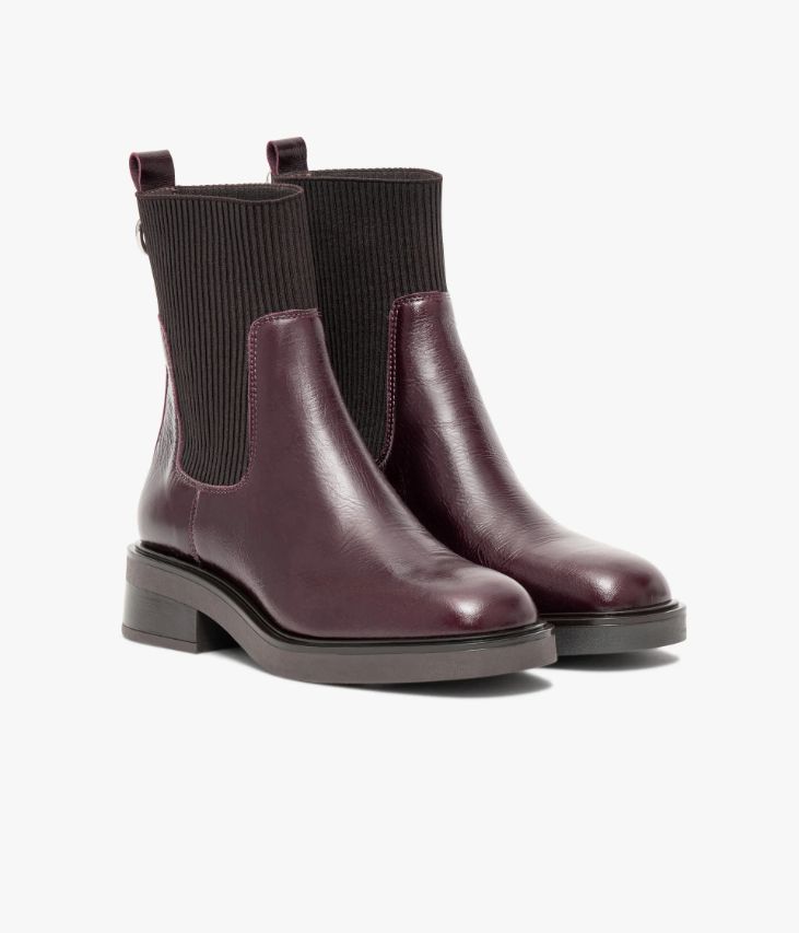 Un boot en cuir vintage acajou fabriqué avec le plus grand soin. Ce boots citadin possède un bout carré et une tige chaussette en élastique côtelé parfaitement ajustée à la cheville. En haut de la tige une tirette ornée d'un anneau métallique facilite l'insertion du pied. Son cuir vintage est un cuir d'aspect vieilli qui se patine avec le temps, un cuir brillant qui affiche un aspect plus ou moins froissé, dont la tonalité peut varier, et qui peut avoir un aspect "déjà porté". Un boots femme doublé cuir avec semelle intérieure cuir dotée d'une fine mousse. Il repose sur une épaisse semelle débordante et un large talon très confortable. Semelle 2 cm.