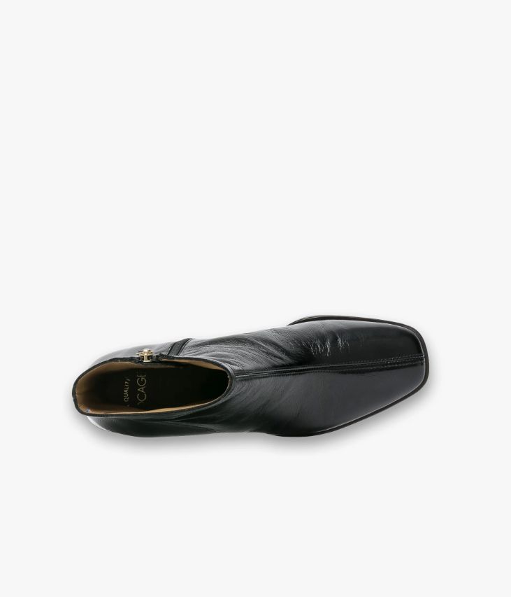 Un boots noir en cuir vintage fabriqué avec soin dans notre propre atelier en France, au cœur du Maine et Loire (49). Une bottine très féminine à la ligne sobre et élégante avec bout carré et surpiqûre sur le dessus. Entièrement doublée cuir elle possède une semelle intérieure cuir dotée d’une fine mousse. Ce boots repose sur une semelle fine avec trépointe cuir débordante et talon lamellé collé très confortable. Son cuir vintage est un cuir d'aspect vieilli qui se patine avec le temps, un cuir brillant qui affiche un aspect plus ou moins froissé, dont la tonalité peut varier, et qui peut avoir un aspect "déjà porté".