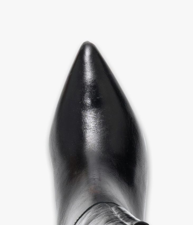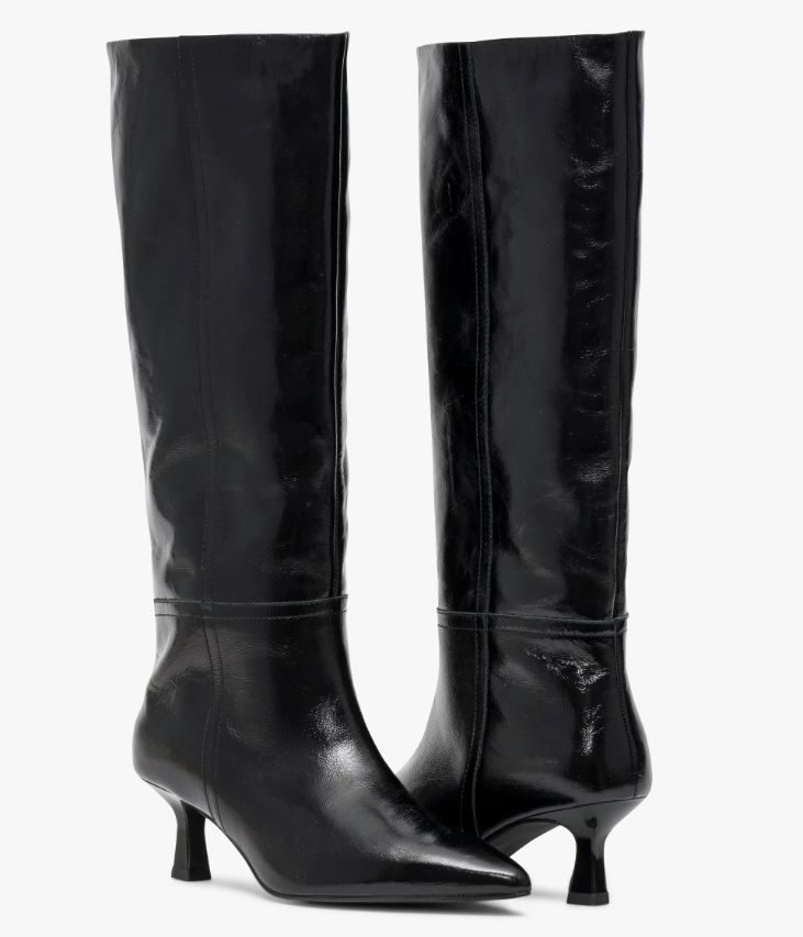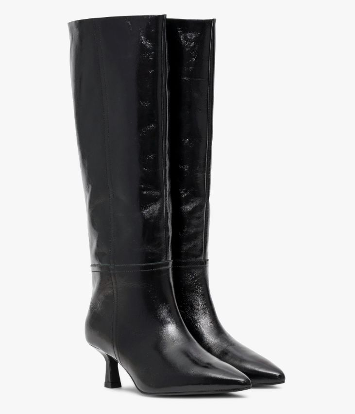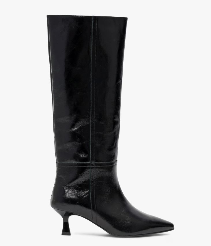 Une botte en cuir noir fabriquée avec le plus grand soin. Hit-mode de la saison, cette sublime botte séduit par sa tige tube facile à enfiler, son bout pointu et son talon kitten-heel laqué offrant une parfaite stabilité. Son cuir vintage est un cuir d'aspect vieilli qui se patine avec le temps, un cuir brillant qui affiche un aspect plus ou moins froissé, dont la tonalité peut varier, et qui peut avoir un aspect "déjà porté". Entièrement doublée cuir, elle possède une semelle intérieure cuir intégrant une fine couche de mousse. Notre technologie Bocage Innovation vous garantit un bien-être inégalé. La semelle dissimule des élastiques qui permettent à votre chaussure de s’adapter à votre pied. Une botte facile à enfiler avec élastique d’aisance en haut de la tige et demi-zip à la cheville. Tour de mollet : 35 cm.
