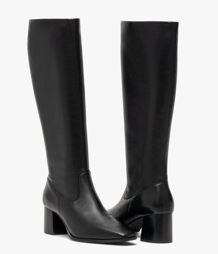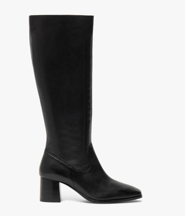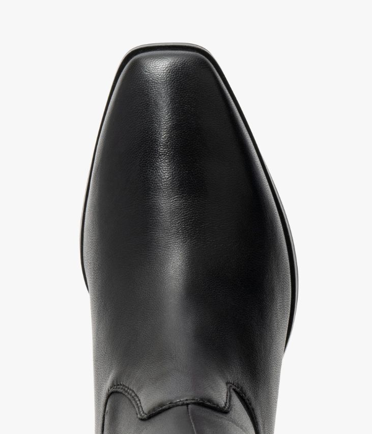 Une sublime botte en cuir noir fabriquée avec le plus grand soin. Une botte féminine à la ligne épurée, avec bout carré et tige galbée souple offrant un ajustement idéal au mollet. Doublée cuir uniquement sur la partie pied, elle possède une semelle intérieure cuir dotée d’une fine mousse. Cette botte se ferme à l’aide d’un zip intérieur et possède un élastique d’aisance en haut de la tige. Elle repose sur une semelle fine avec trépointe cuir et un large talon lamellé collé. Notre technologie Bocage Innovation vous garantit un bien-être inégalé. La semelle dissimule des élastiques qui permettent à votre chaussure de s’adapter à votre pied. Tour de mollet 34 cm en pointure 37.