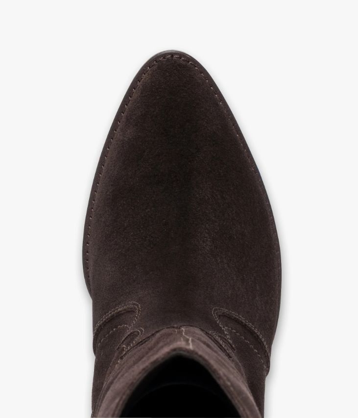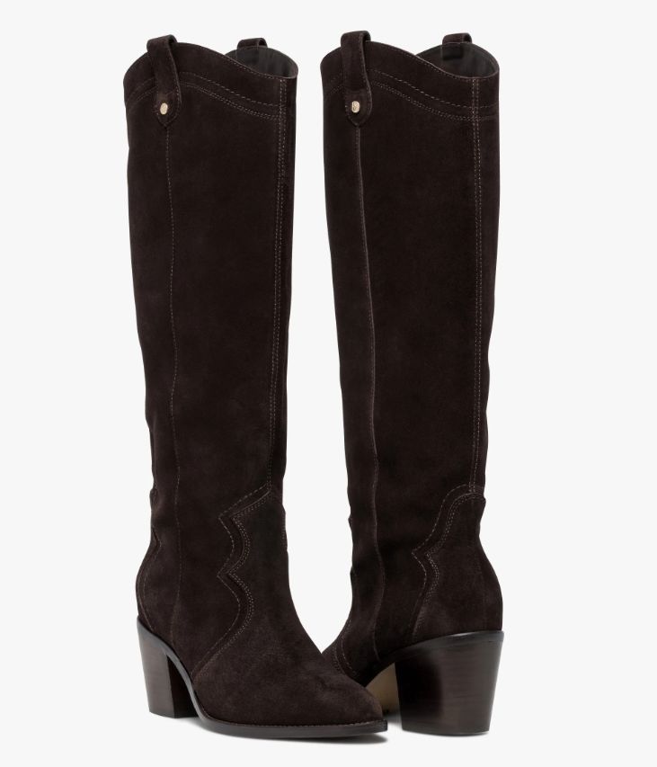 Une jolie botte en cuir velours chocolat fabriquée avec le plus grand soin. Une botte Santiag arborant tous les détails de l’univers western, surpiqûres en forme de flammes, bout pointu et talon en biseau. Ces bottes femme possèdent une tige droite aux finitions arrondies avec tirettes de chaque côté, ornées de logos signature. Une chaussure entièrement doublée cuir avec semelle intérieure cuir confortable. Notre technologie Bocage Innovation vous garantit un bien-être inégalé. La semelle dissimule des élastiques qui permettent à votre chaussure de s’adapter à votre pied. Elle se ferme à l’aide d’un demi-zip à la cheville. Talon lamellé collé. Tour de mollet 36 cm.