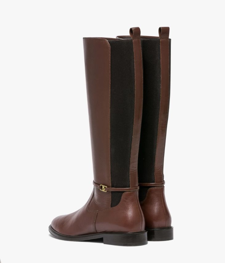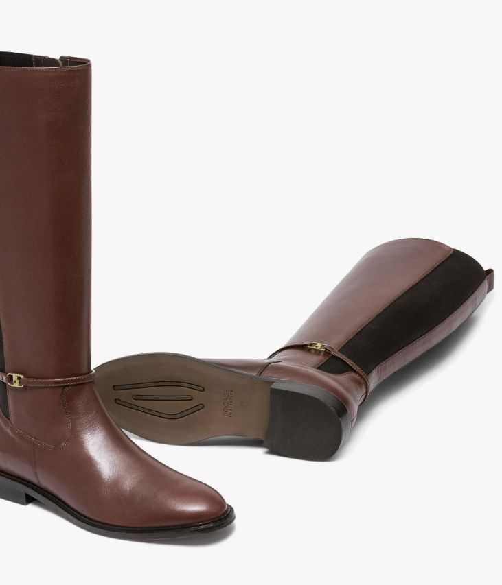 Une botte en cuir cognac fabriquée avec le plus grand soin. Cette botte cavalière possède de larges élastiques à l’arrière de la tige, assurant un ajustement parfait au mollet. Une botte ultra féminine avec bout amande et une fine bride de cuir ornée d’un logo signature en métal doré autour de la cheville. Une chaussure doublée cuir avec semelle intérieure cuir moussée. Notre technologie Bocage Innovation vous garantit un bien-être inégalé. La semelle dissimule des élastiques qui permettent à votre chaussure de s’adapter à votre pied. Fermeture par zip intérieur. Tour de mollet 35 cm.