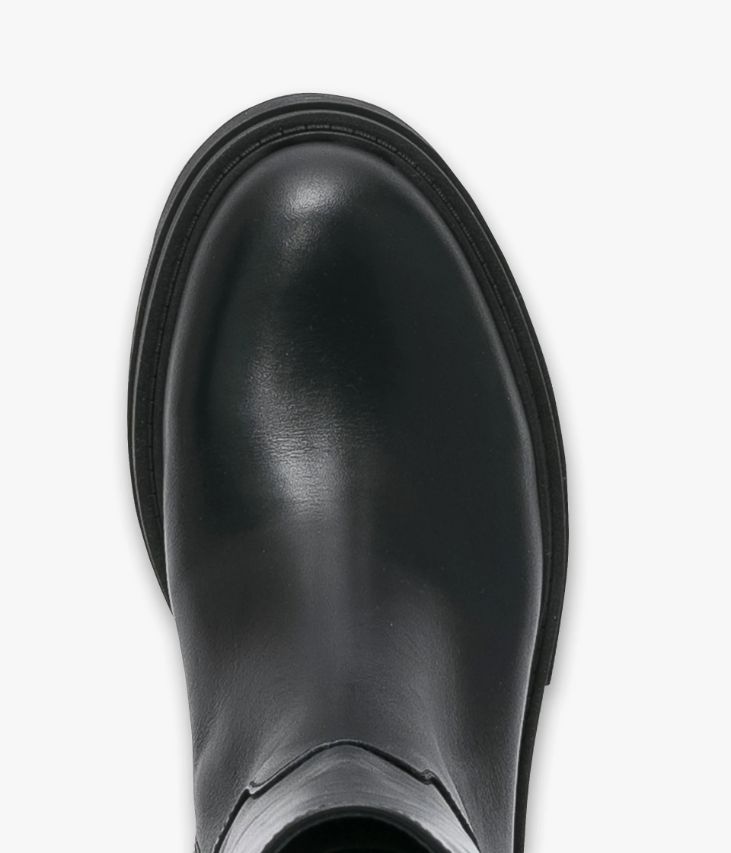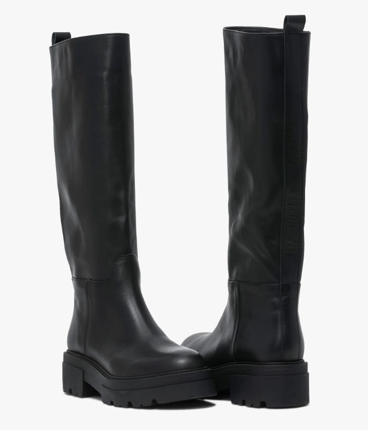 Une botte en cuir noir fabriquée avec soin au Portugal. Cette botte cavalière à bout amande affiche un look sobre, chic et intemporel, twisté par une imposante semelle crantée. Une botte doublée cuir sur la partie pied avec semelle intérieure cuir et tige non doublée pour plus de souplesse. Elle se ferme par un demi-zip au niveau de la cheville et possède un élastique d’aisance en haut de la tige. A noter, sa tirette à l'arrière du pied qui facilite le chaussant. Semelle 3 cm. Tour de mollet 37 cm. Une botte à porter avec un jean slim comme avec une robe.