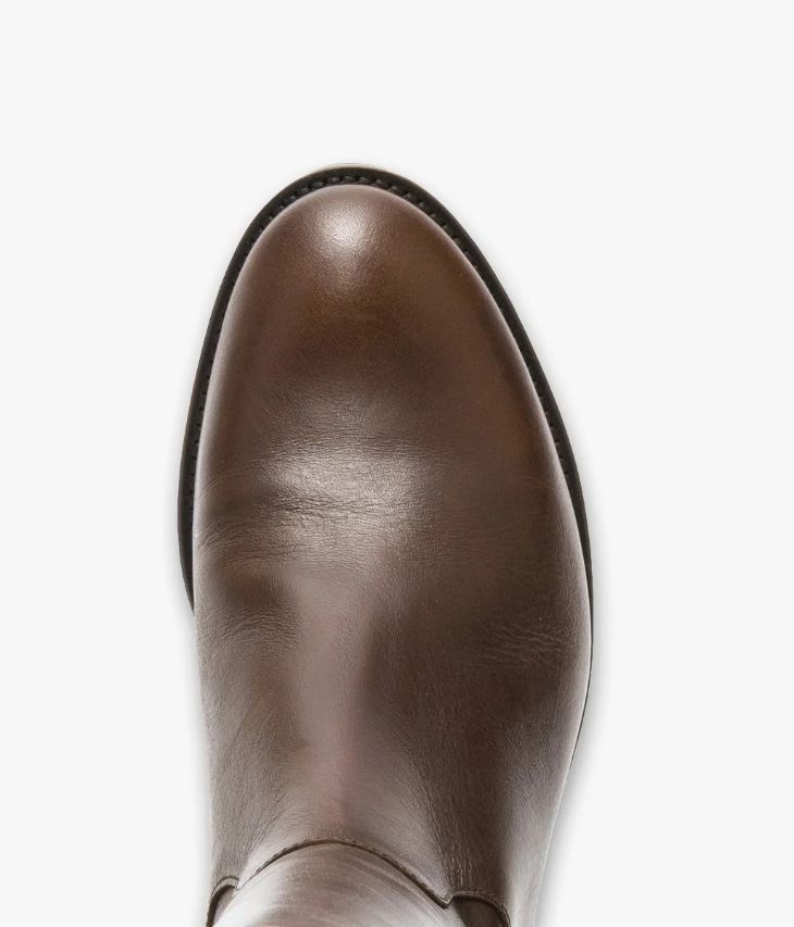 Une botte en cuir lisse chocolat fabriquée avec soin au Portugal. Un modèle sobre et élégant inspiré de la botte cavalière, avec bout amande et tige galbée ornée d’un logo signature à l’arrière. Un intemporel facile à porter avec toutes les tenues citadines. Une botte entièrement doublée cuir avec semelle intérieure cuir ultra confortable. Elle repose sur une semelle avec trépointe cuir piquée et un talon lamellé collé. Notre technologie Bocage Innovation vous garantit un bien-être inégalé. La semelle dissimule des élastiques qui permettent à votre chaussure de s’adapter à votre pied. Elastique d’aisance en haut de la tige. Tour de mollet S largeur : 33 cm.