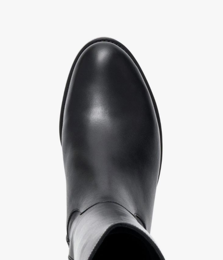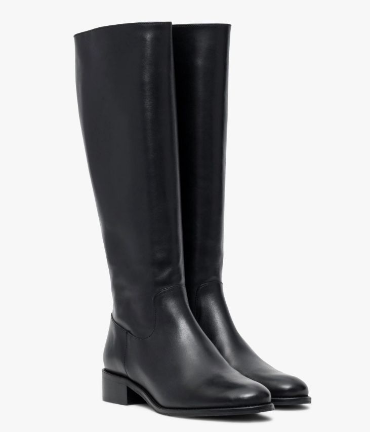 Une botte en cuir lisse noir fabriquée avec soin au Portugal. Un modèle sobre et élégant inspiré de la botte cavalière, avec bout amande et tige galbée ornée d’un logo signature à l’arrière. Un intemporel facile à porter avec toutes les tenues citadines. Une botte entièrement doublée cuir avec semelle intérieure cuir ultra confortable. Elle repose sur une semelle avec trépointe cuir piquée et un talon lamellé collé. Notre technologie Bocage Innovation vous garantit un bien-être inégalé. La semelle dissimule des élastiques qui permettent à votre chaussure de s’adapter à votre pied. Elastique d’aisance en haut de la tige. Tour de mollet L largeur : 39 cm.