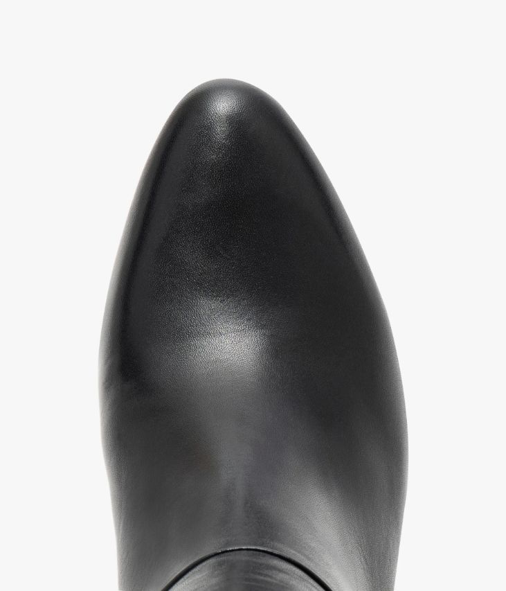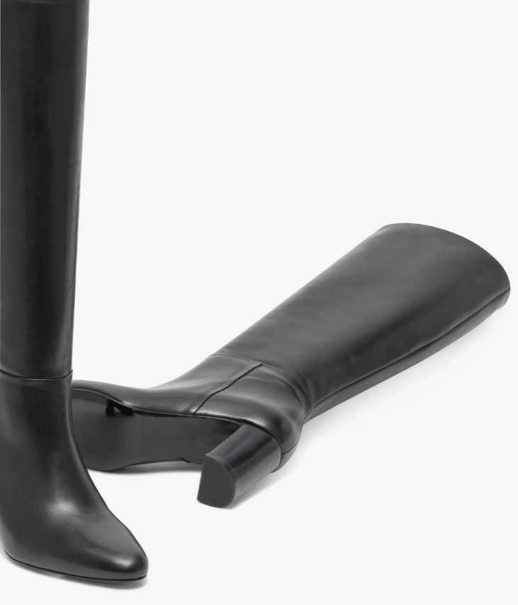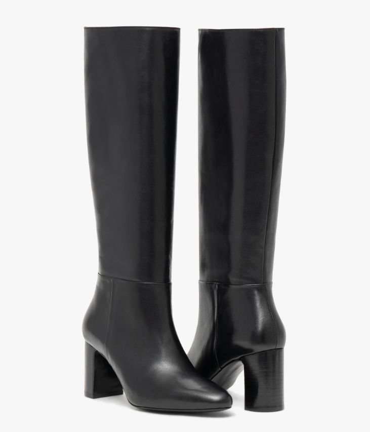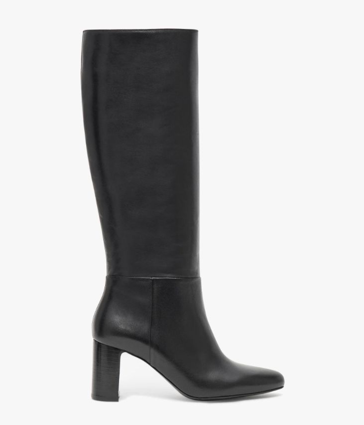 Une sublime botte en cuir lisse noir fabriquée avec soin au Portugal. Un modèle chic et intemporel avec bout pointu, ligne effilée et tige tube galbée. Elle repose sur une semelle fine et un talon à gorge lamellé collé. Entièrement doublée cuir, elle possède une semelle intérieure cuir dotée d’une fine mousse. Cette botte ultra féminine se ferme facilement à l’aide d’un demi-zip à la cheville. Tour de mollet 34 cm.