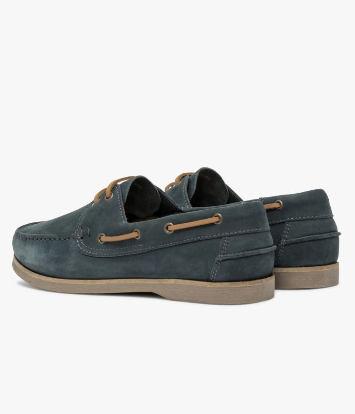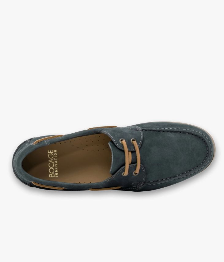 Une chaussure bateau en nubuck bleu fabriquée avec soin au Portugal. Une chaussure estivale au coloris uniforme avec lacet en cuir camel. Une chaussure avec semelle intérieure cuir dotée d’une fine mousse. Elle repose sur une semelle miel en caoutchouc véritable avec trépointe cuir. Notre technologie Bocage Innovation vous garantit un bien-être inégalé. La semelle dissimule des élastiques qui permettent à votre chaussure de s’adapter à votre pied.