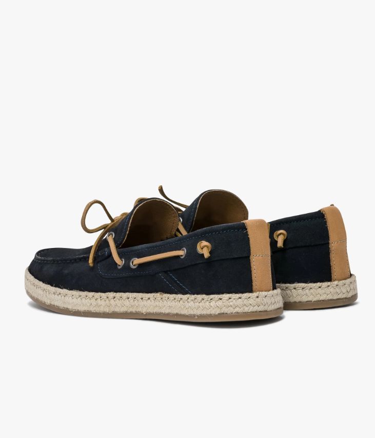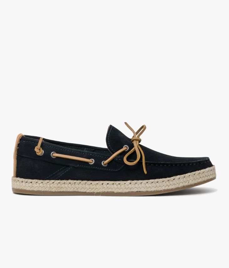Une chaussure bateau en cuir velours marine fabriquée avec soin au Portugal. Un basique du vestiaire masculin revisité avec une semelle en corde tressée pour une allure toujours plus estivale. Inspiré du mocassin, il se distingue par sa languette souple et son lacet en cuir camel noué sur le dessus. Une chaussure confortable et facile à enfiler, avec semelle intérieure cuir dotée d’une fine mousse.