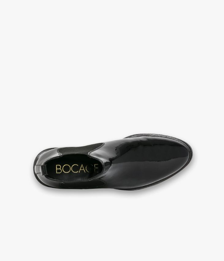 Un Chelsea boots noir très élégant avec son dessusen cuir verni et son bout amande. Il est agrémenté de larges élastiques ton surton, d’une bande surpiquée au talon et d’une tirette qui facilite le chaussant.Une chaussure doublée cuir avec semelle intérieure cuir dotée d’une fine mousse.Notre technologie Bocage Innovation vousgarantit un bien-être inégalé. La semelle dissimule des élastiques quipermettent à votre chaussure de s’adapter à votre pied.