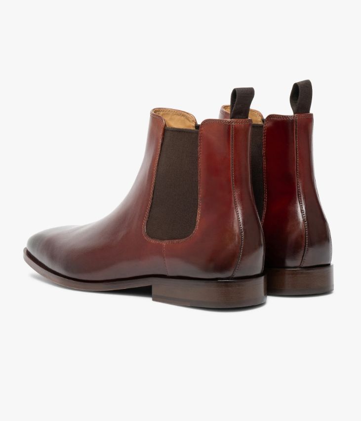 Un Chelsea boots en cuir cognac fabriqué avec le plus grand soin. Une chaussure élégante à la finition patinée, avec bout carré contemporain et ligne effilée, qui accompagne tous les looks qu’ils soient chics ou casual. Il s’enfile facilement grâce à ses élastiques latéraux ton sur ton et sa tirette au talon. Un boots homme entièrement doublé cuir avec semelle intérieure cuir moussée. Il repose sur une authentique semelle en cuir et un talon lamellé collé. Cette paire bénéficie du cousu Blake, une couture unique prenant, à la fois, la semelle intérieure, la semelle extérieure et la tige de la chaussure. Ce montage est apprécié pour la finesse de la semelle.