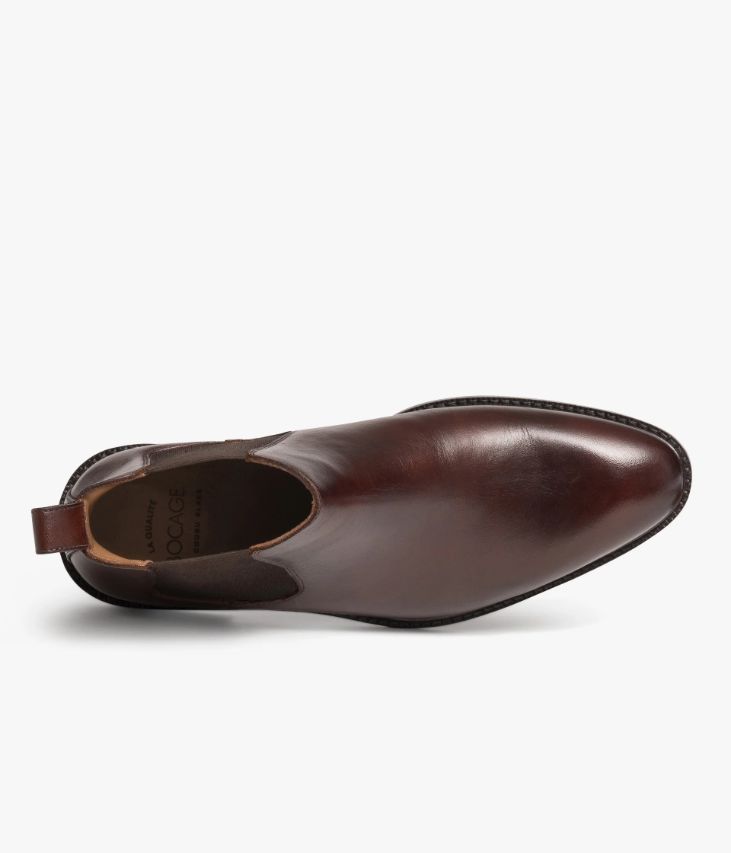 Un Chelsea boots châtaigne en cuir lisse confectionné avec le plus grand soin. Cet essentiel du vestiaire masculin accompagne les tenues élégantes comme les looks décontractés. Il arbore une ligne effilée avec bout amande et s’enfile facilement grâce à ses élastiques latéraux ton sur ton et sa tirette au talon. Un Chelsea entièrement doublé cuir avec semelle intérieure cuir dotée d’une fine mousse. Il repose sur une semelle débordante avec trépointe cuir piquée. Notre technologie Bocage Innovation vous garantit un bien-être inégalé. La semelle dissimule des élastiques qui permettent à votre chaussure de s’adapter à votre pied. Cette paire bénéficie du cousu Blake, une couture unique prenant, à la fois, la semelle intérieure, la semelle extérieure et la tige de la chaussure. Ce montage est apprécié pour la finesse de la semelle.