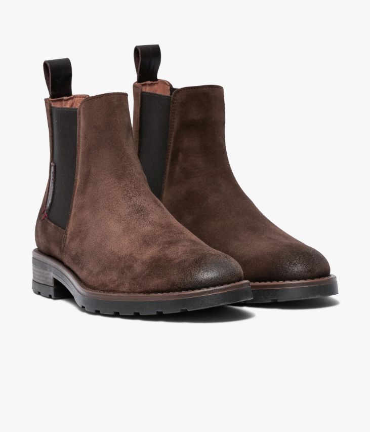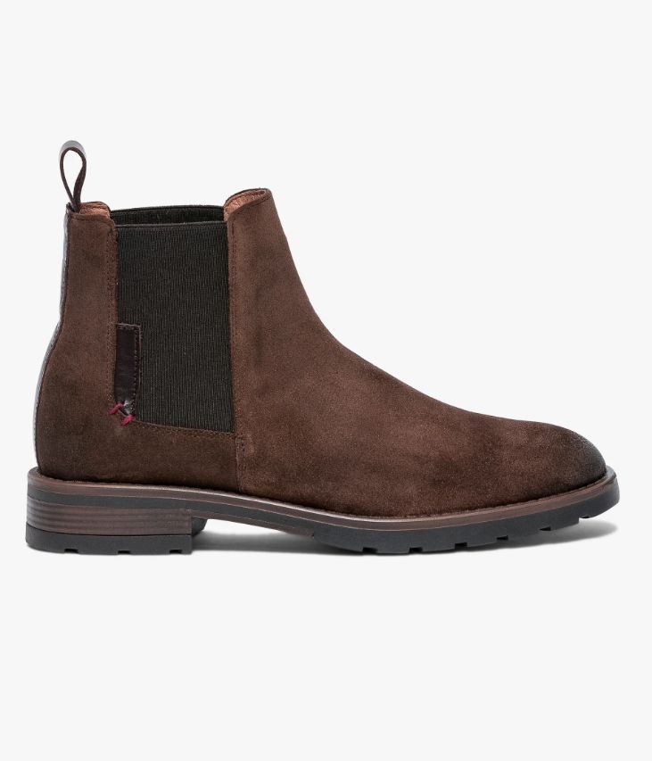 Un Chelsea boots marron en cuir velours, fabriquéavec soin dansnotre atelier au Portugal. Un Chelsea revisité dans une version décontractéeavec son cuir légèrement brossé sur le bout du pied. Il est agrémenté depetites touches de cuir lisse au talon et sur les côtés avec piqûres sellierrouges. Il s’enfile facilement grâce à ses élastiques latéraux et sa tirette autalon qui facilite le chaussant. Boots doublé textile avec semelle intérieurecuir dotée d’une fine mousse. Il repose sur une semelle crantée en caoutchouc.