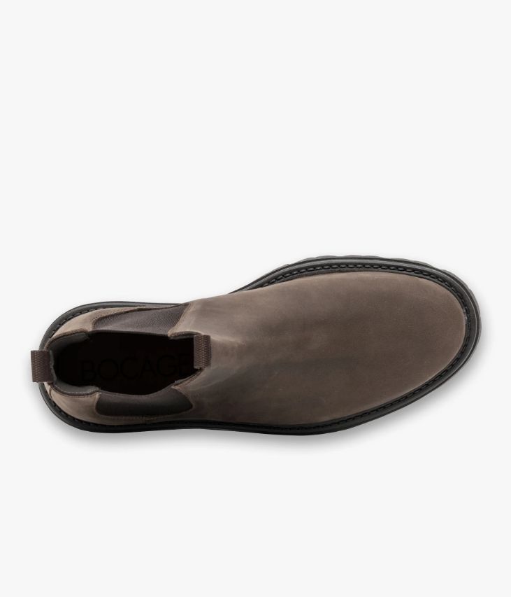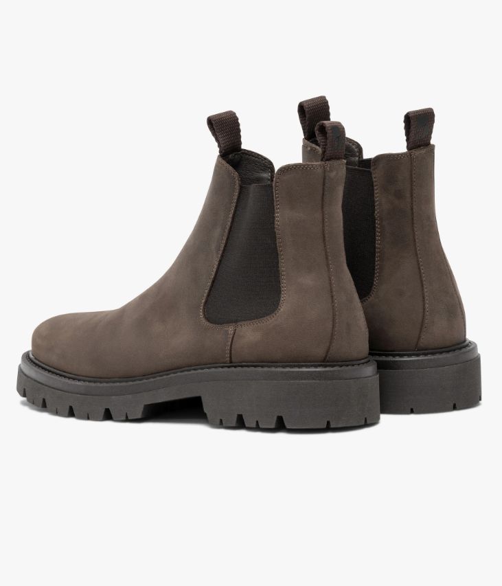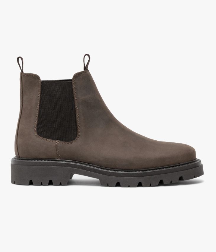 Un Chelsea boots en nubuck gras couleur taupe fabriqué avec soin au Portugal. Une bottine passe-partout à l’allure urbaine contemporaine qui se distingue par sa semelle crantée ultra légère. Elle est dotée d’élastiques latéraux et de deux tire-bottes permettant de la chausser facilement. Une chaussure partiellement doublée cuir avec semelle intérieure cuir légèrement moussée. Semelle : 3 cm.