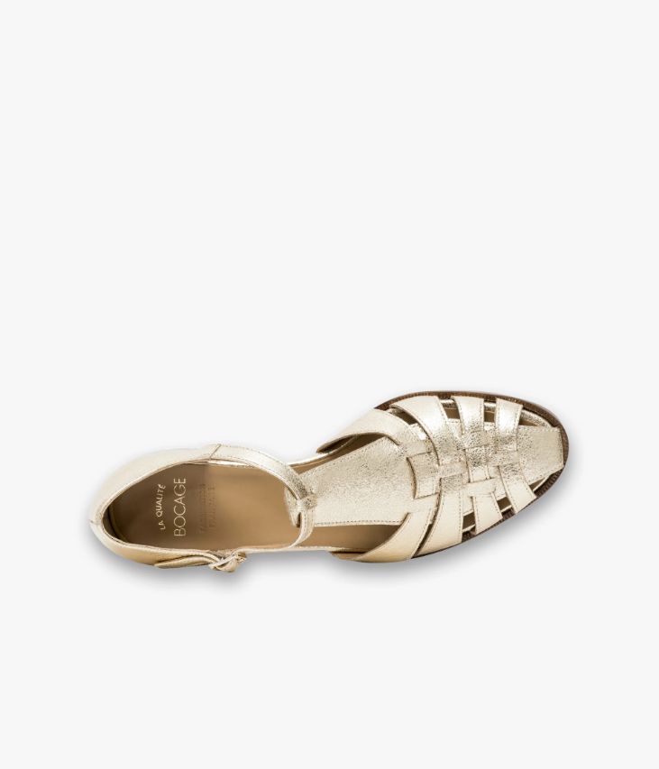 Un derby doré en cuir métallisé effet craquelé fabriqué avec soin dans notre atelier en France, au cœur du Maine et Loire (49). Une chaussure « style fisherman » aux accents rétro et résolument féminine avec sa tige effilée et son bout amande. Elle est posée sur une semelle fine avec trépointe cuir ciselée et talon lamellé collé. Notre technologie Bocage Innovation vous garantit un bien-être inégalé. La semelle dissimule des élastiques qui permettent à votre chaussure de s’adapter à votre pied. Une chaussure entièrement doublée cuir avec semelle intérieure cuir dotée d’une fine mousse. Fermeture par boucle dorée.