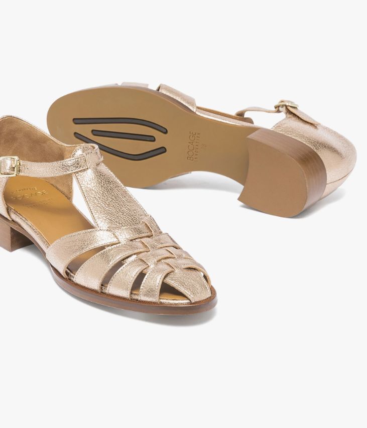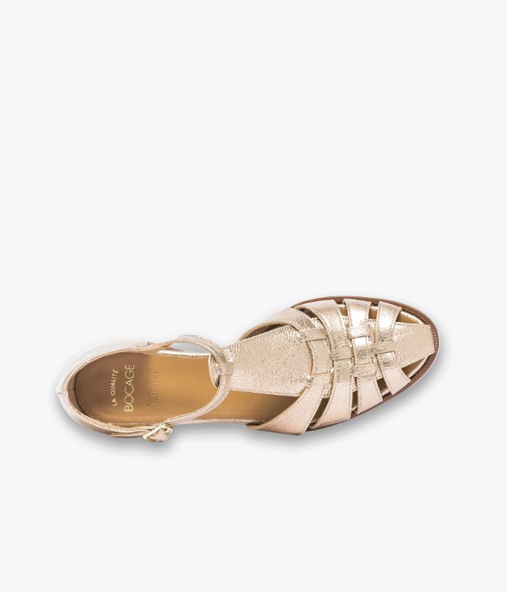 Un derby doré en cuir métallisé craquelé fabriqué avec soin dans notre atelier en France, au cœur du Maine et Loire (49). Une chaussure « style Fisherman », entièrement doublée cuir avec semelle intérieure cuir. Elle est posée sur une semelle fine avec trépointe ciselée et talon lamellé collé. Notre technologie Bocage Innovation vous garantit un bien-être inégalé. La semelle dissimule des élastiques qui permettent à votre chaussure de s’adapter à votre pied. Fermeture par boucle dorée.