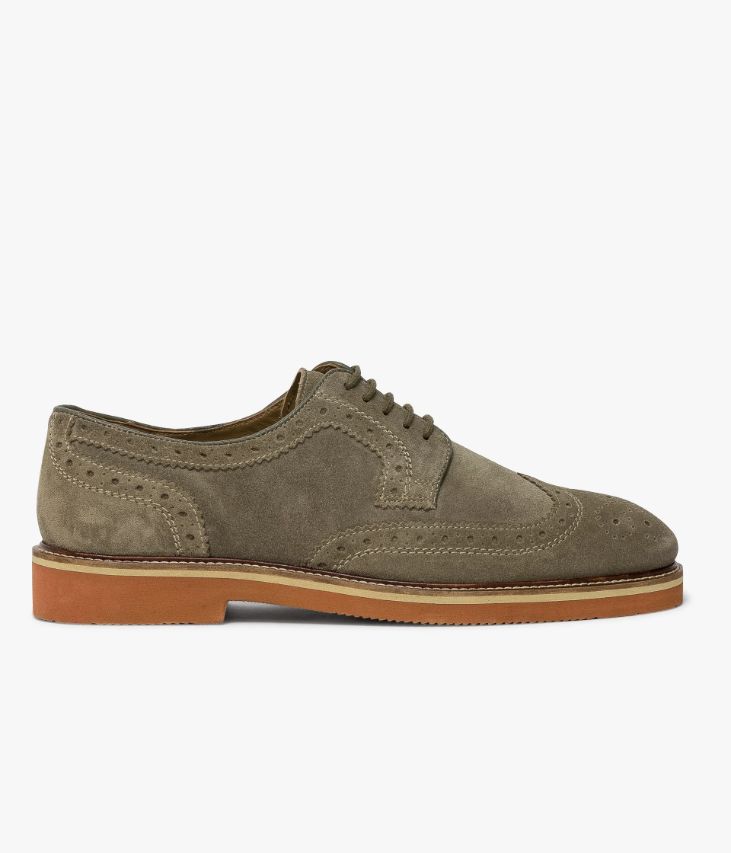 Un derby taupe en cuir velours fabriqué avec le plus grand soin. Il affiche un bout fleuri et des finitions perforées sur le col et au talon qui lui confèrent une allure particulièrement élégante. Une chaussure de ville entièrement doublée cuir avec semelle intérieure cuir dotée d’une fine mousse. Elle est posée sur une épaisse semelle légère ocre avec trépointe surpiquée. Fermeture par lacets ronds ton sur ton.