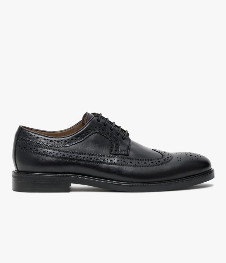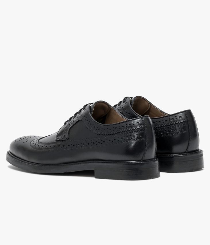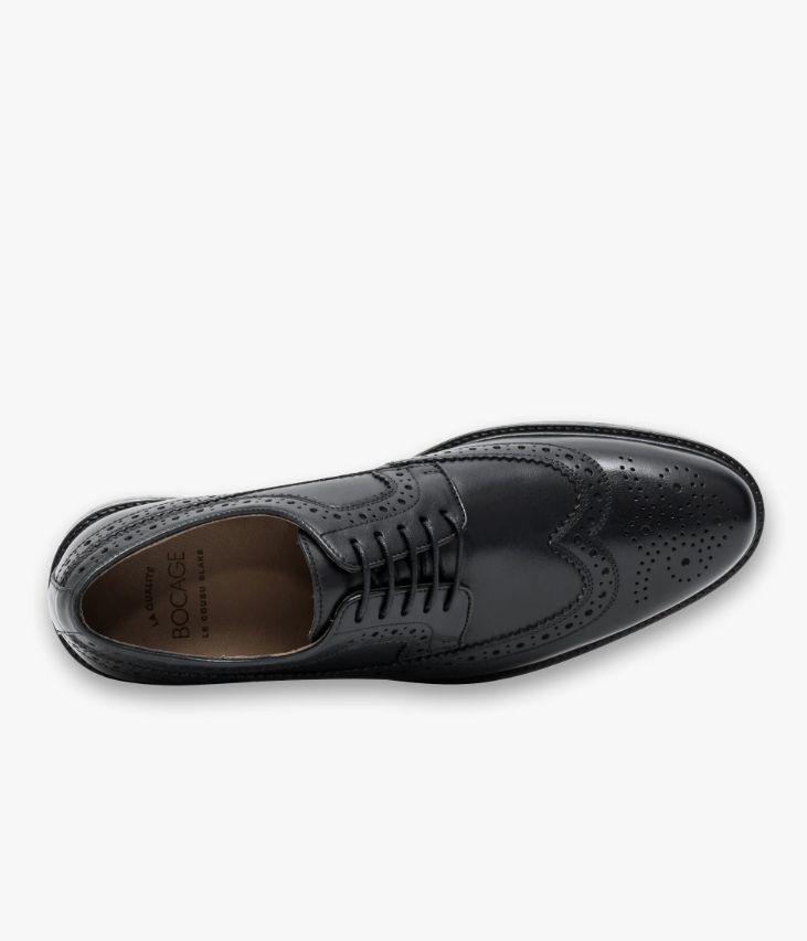 Un derby en cuir noir fabriqué avec le plus grand soin. Ce modèle particulièrement élégant doté d’un bout golf et de perforations sur les quartiers incarne l’esprit du derby classique avec une pointe de modernité. Un derby entièrement doublé cuir avec semelle intérieure cuir moussée. Il repose sur une semelle avec picots antidérapants et trépointe cuir piquée. Cette paire bénéficie du cousu Blake, une couture unique prenant, à la fois, la semelle intérieure, la semelle extérieure et la tige de la chaussure. Ce montage est apprécié pour la finesse de la semelle.