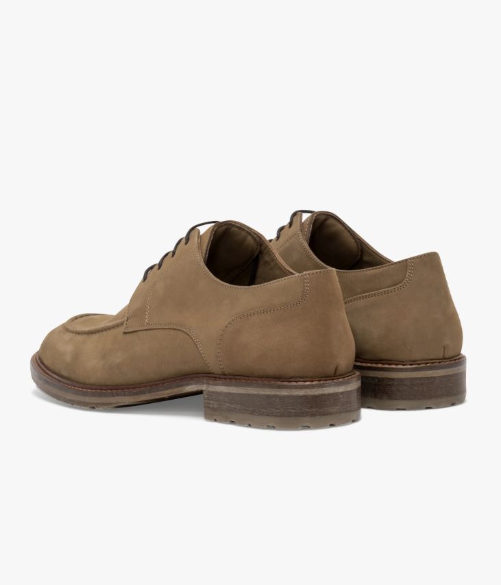 Un derby en nubuck couleur biscuit fabriqué avec le plus grand soin. Un modèle intemporel avec doubles surpiqûres sur les quartiers et surpiqûre en relief sur le plateau. Il accompagnera les tenues élégantes comme les tenues décontractées. Une chaussure entièrement doublée cuir avec semelle intérieure cuir dotée d’une fine mousse. Elle repose sur une semelle antidérapante avec double trépointe cuir piquée. Languette rembourrée pour plus de confort. Ce modèle est livré avec deux lacets de couleurs différentes.