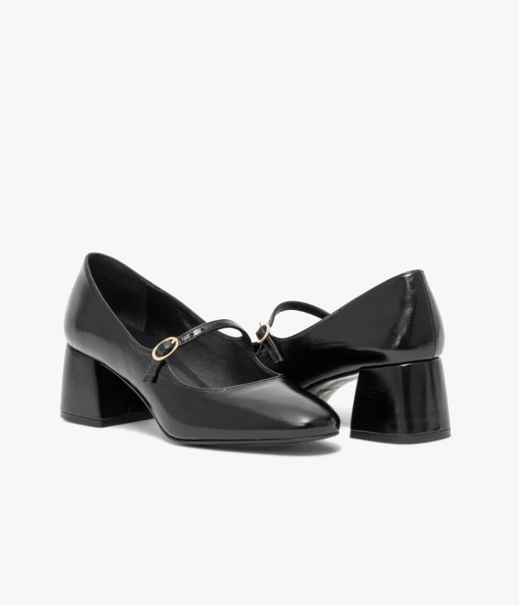 Un escarpin en cuir noir fabriqué avec soin au Portugal. Un modèle chic et classique aux lignes arrondies avec bout amande et fine bride sur le dessus fermée par une élégante boucle ovale. Il repose sur une semelle fine et un large talon flare enrobé aux accents vintage. Une chaussure entièrement doublée cuir avec semelle intérieure cuir dotée d’une fine mousse. Son cuir vintage est un cuir d'aspect vieilli qui se patine avec le temps, un cuir brillant qui affiche un aspect plus ou moins froissé, dont la tonalité peut varier, et qui peut avoir un aspect "déjà porté".